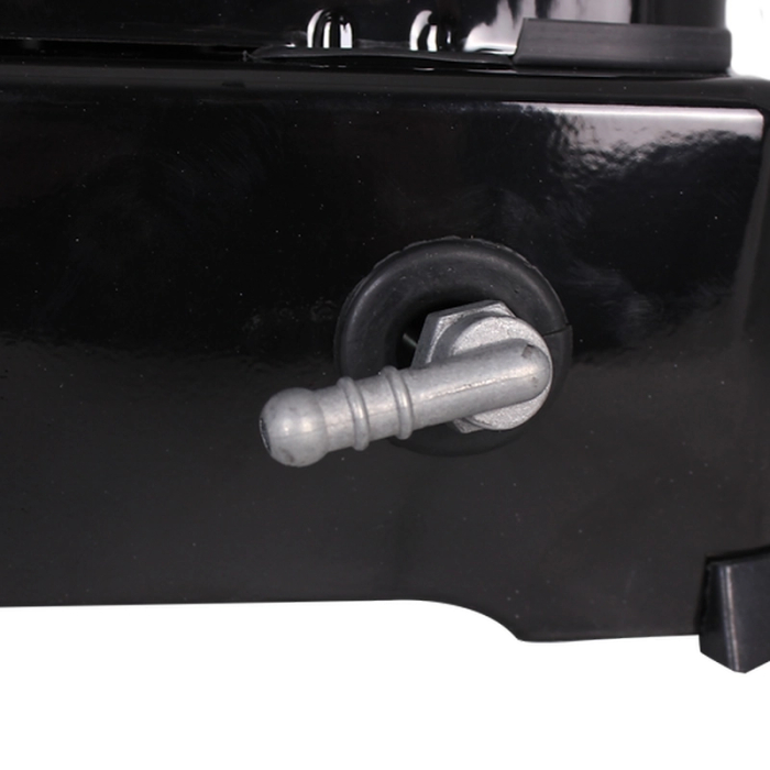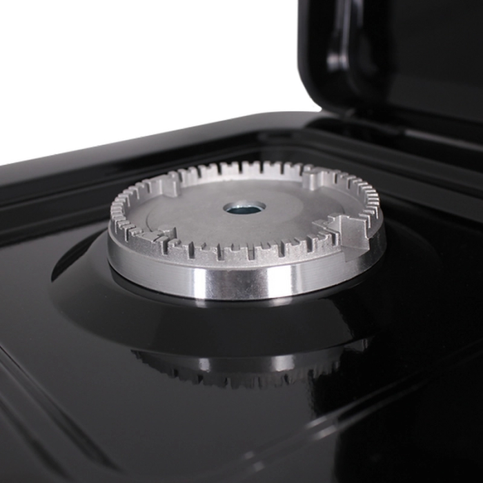Настольная газовая плитка, мощность 2200 Вт, 1 конфорка, механическая управление, поворотные переключатели, крышка, рабочая поверхность - эмалированная, решетка из литого алюминия, встроенный штуцер для шланга, прорезиненные ножки