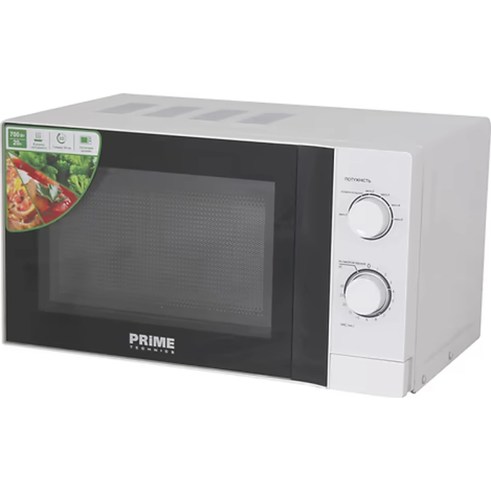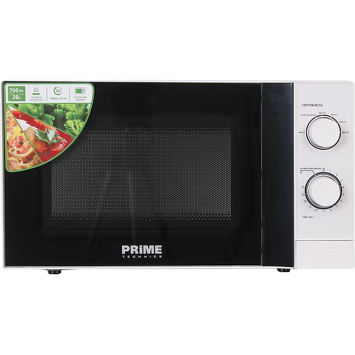 Удобная и надежная микроволновая печь PRIME Technics11 PMW станет незаменимой помощницей для каждой хозяйки, ведь она поможет сэкономить время на размораживании, приготовлении и разогреве пищи. Объем камеры-20 л, а диаметр поворотного диска – 245 мм. Благодаря простому и понятному механическому управлению у вас не возникнет проблем с настройкой на нужный режим. Одним из преимуществ микроволновки является эмалевое покрытие, которое требует минимального ухода и надолго сохраняет свой привлекательный вид. Вы можете выбрать одну из шести ступеней мощности (максимальный уровень составляет 700 Вт) и установить таймер.