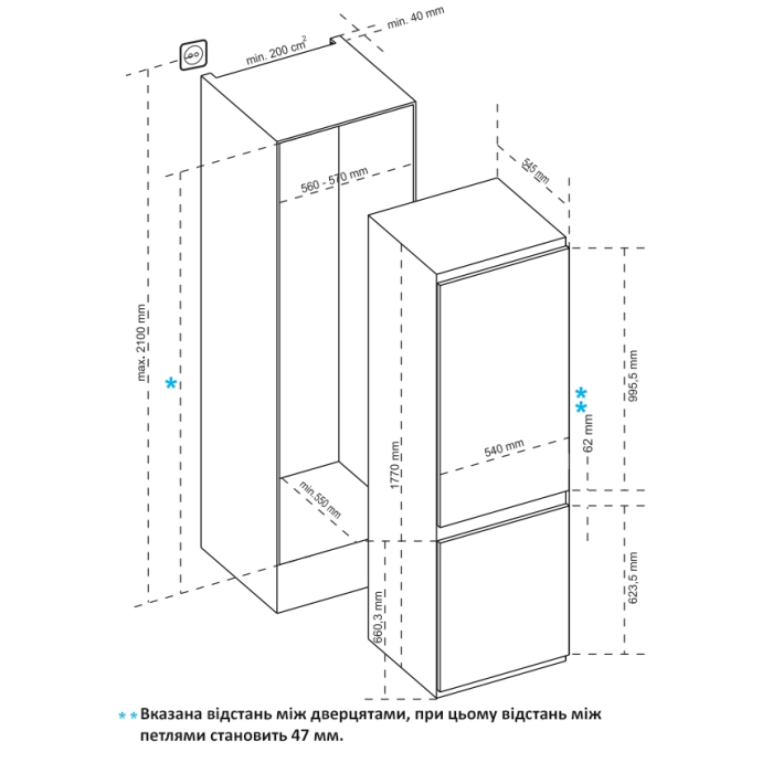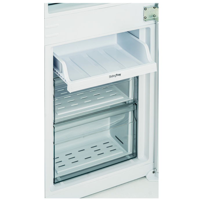 Реализован благодаря удобным направляющим, которые размещены на дверце холодильника, что позволяет автоматически плавно смещать. внутренний элемент фасада во время каждого открывания дверцы.