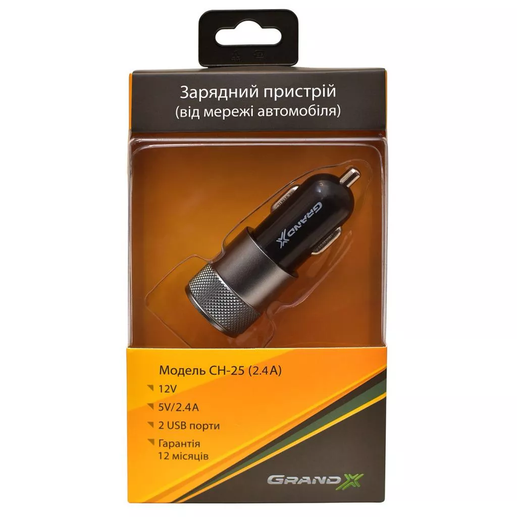 Автомобильное зарядное устройство Grand-X CH-25B рассчитано для длительного использования и безопасной зарядки Вашего портативного устройства от сети автомобиля. Данное USB-зарядное устройство предназначено для питания и зарядки USB хабов, планшетов, электронных книг, мобильных телефонов и другой цифровой техники с разъемом с соответствующими параметрами.