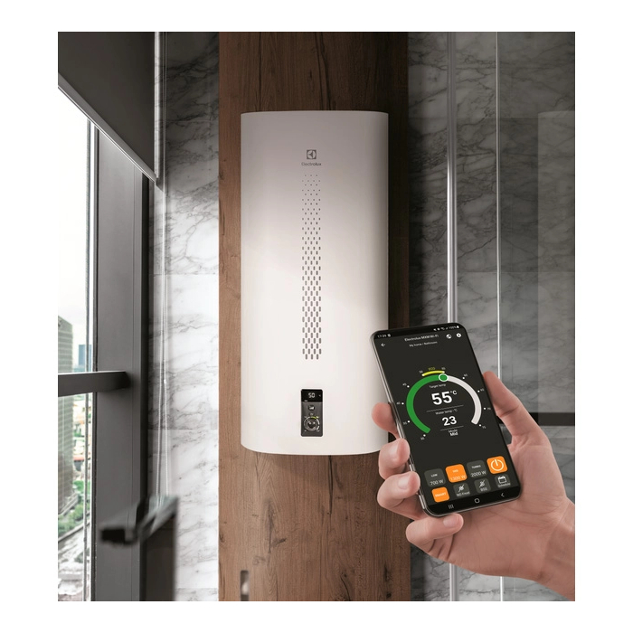 При установке съемного модуля Wi-Fi (приобретён отдельно) водонагреватель Electrolux EWH MXM поддерживает дистанционное управление. Следует только войти в мобильное приложение на смартфоне и установить параметры работы водонагревателя для получения воды заданной температуры до нужного времени. Дистанционный контроль и регулирование работы бака позволят позаботиться о комфорте для всей семьи, а также существенно снизить энергозатраты.