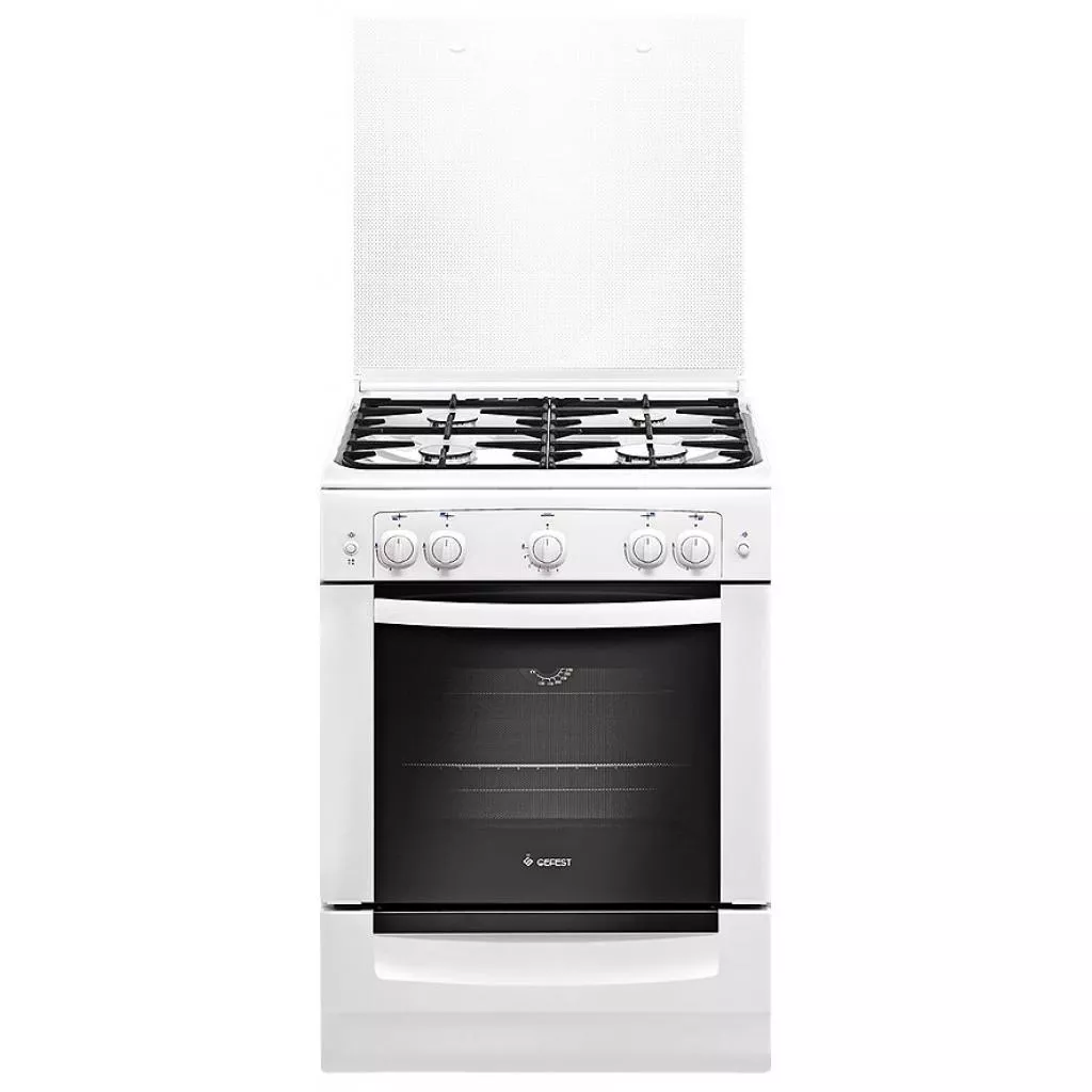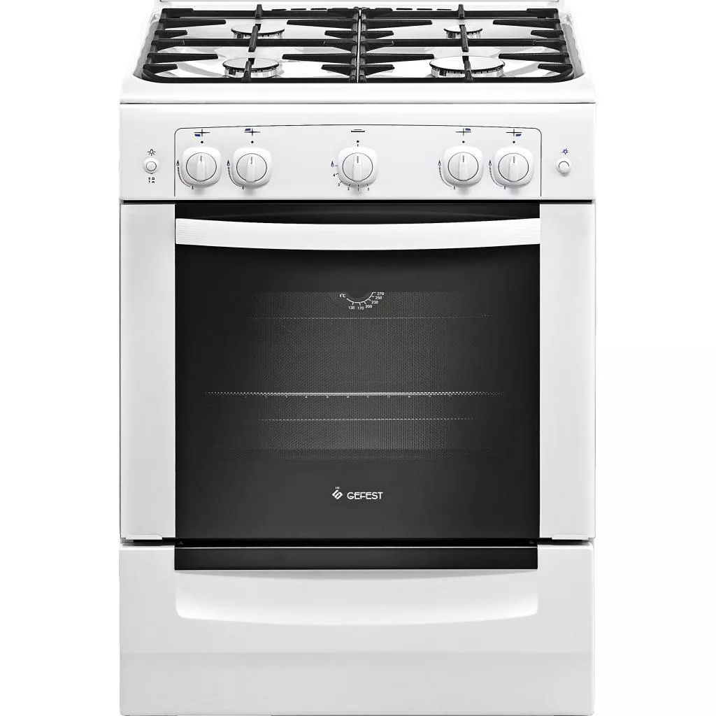В Gefest ПГ 6100-01 под духовкой установлен ящик, он предусмотрен для хранения посуды. Варочная панель модели покрыта белой эмалью, благодаря чему плиту от жира вытирать достаточно легко. Для удобства духовка оснащена яркой лампочкой, при необходимости ее можно включить. Прозрачное жаропрочное стекло двери духовочного шкафа дает возможность наблюдать за степенью готовности блюда. Над конфорками установлена достаточно прочная чугунная решетка, которая позволяет готовить несколько блюд одновременно.