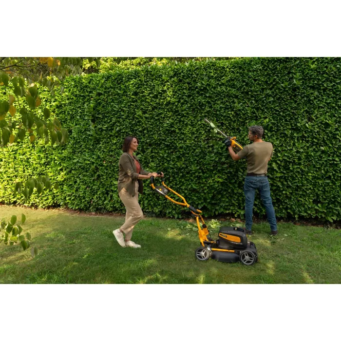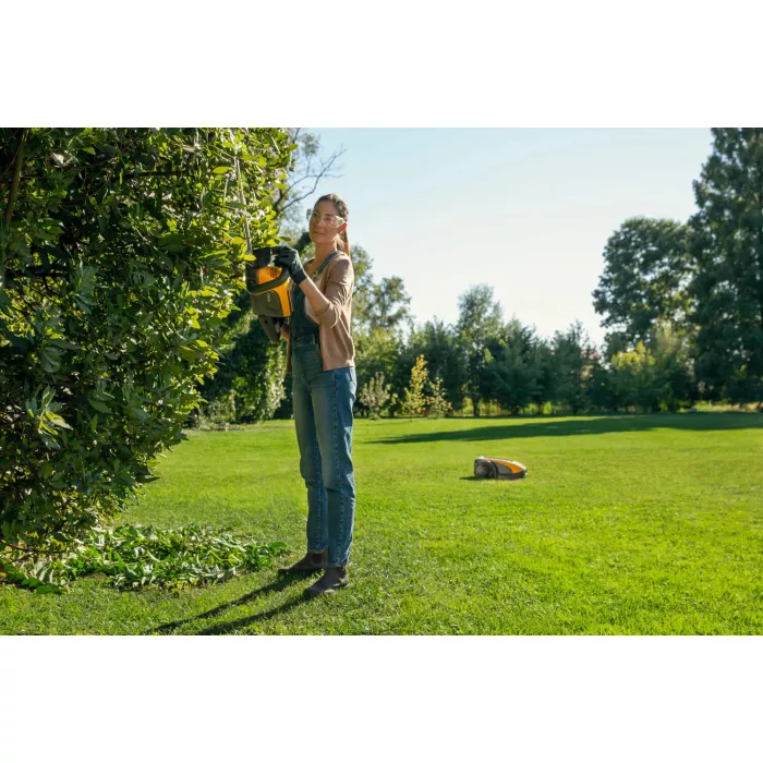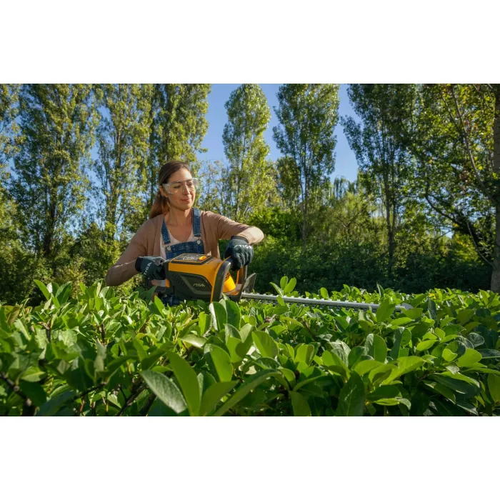 ? Кусторез HT500e оснащен и укомплектован аккумуляторным двигателем нового поколения, который позволяет работать с максимально и в полном объеме свободой и комфортом, обеспечивая низкие вибрации и требует меньше обслуживания, а также тихий с нулевой уровнем выбросов. Двойное лезвие кустореза имеет длину 58 см, в сочетании с вращающейся рукояткой на 180 град, обеспечивают идеальный рез.