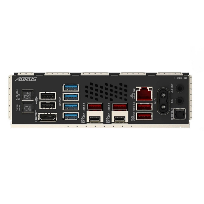Наружные порты | 1 x Clear CMOS button, 1 x HDMI, 1 x optical SPDIF out, 1 x Q-Flash Plus button, 1 x RJ45, 2 x Audio, 2 x SMA antenna connectors (2T2R), 2 x USB 2.0, 2 x USB4 (40Gbps) ports (2 x USB Type-C), 4 x USB 3.2 Gen 2, 4 x USB 3.2 Gen1 |