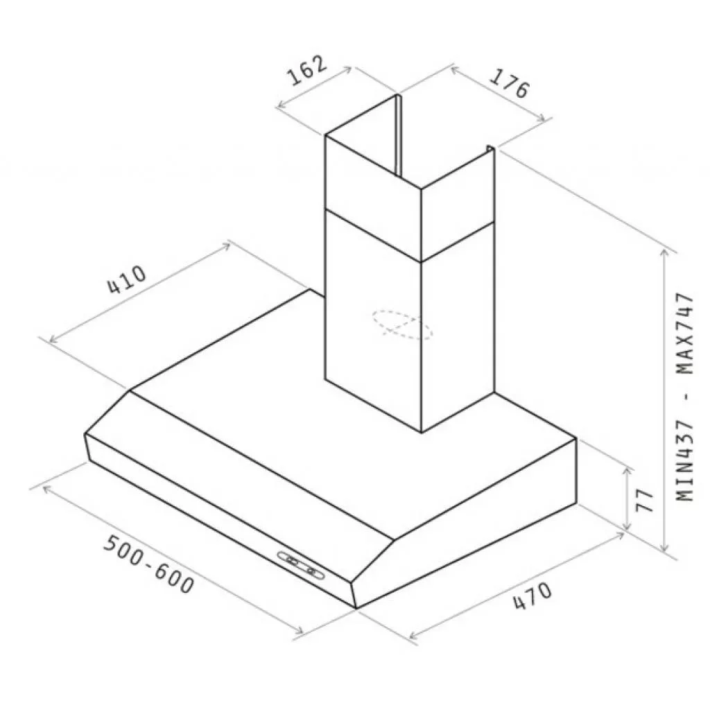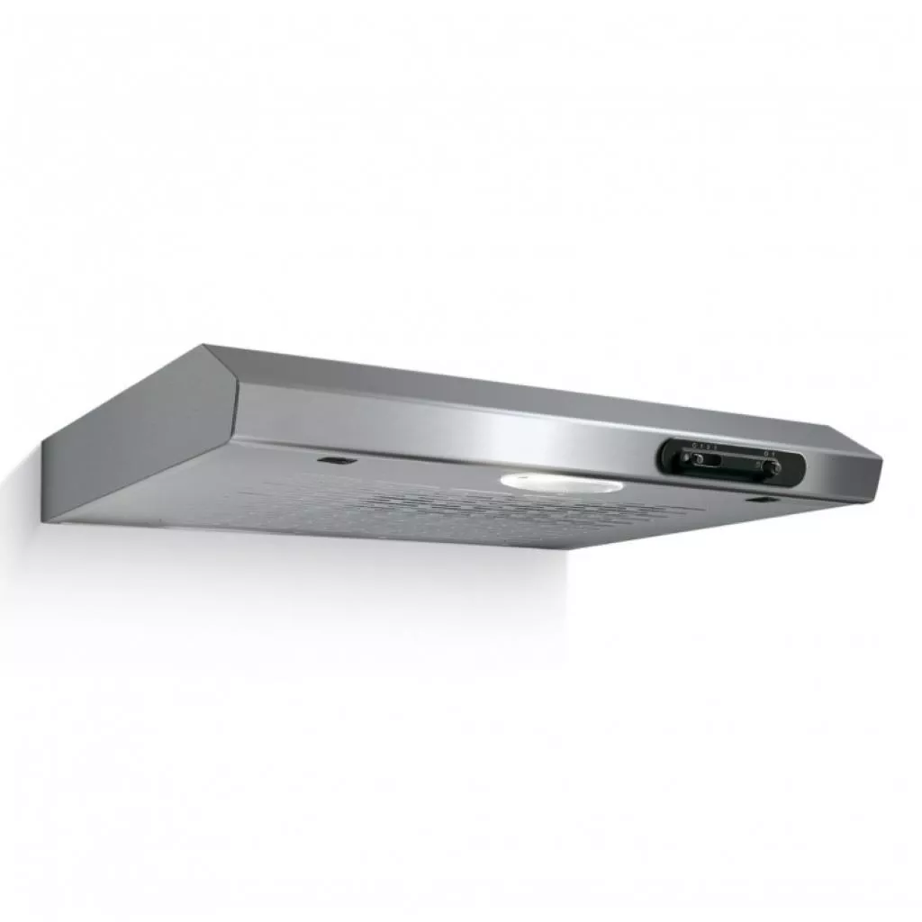 Вытяжка шириной 60 сантиметров крепится над плитой и имеет производительность 155 м3/ч. В зависимости от интенсивности готовки и испарений можно выбрать один из трех скоростей работы. В режиме отвода воздух, очищается через металлический жироулавливающий фильтр и отводится в вентиляционный канал. В режиме рециркуляции необходима установка и угольного фильтра. Рабочая поверхность освещается галогенной лампой.