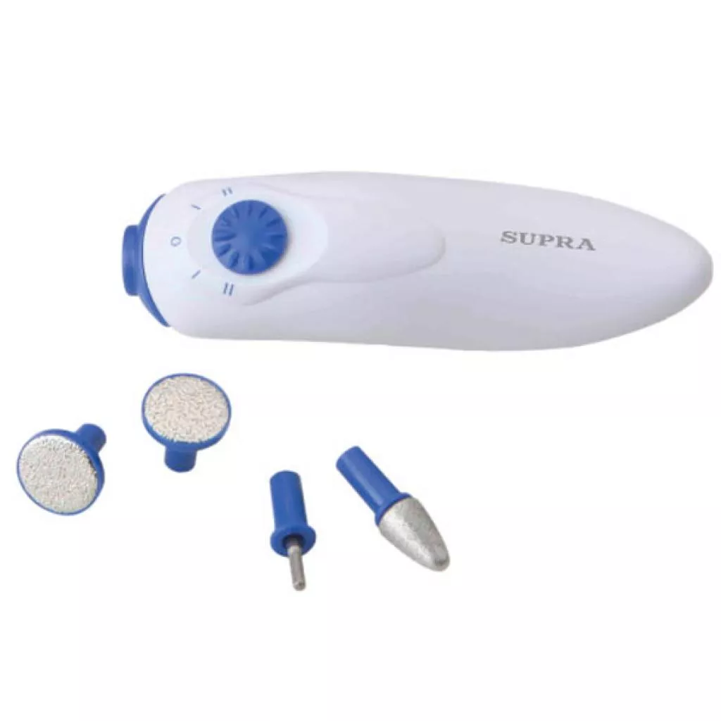 Модель включает в себя четыре насадки, которые эффективно ухаживают за ногтями и делают пяточки гладкими.