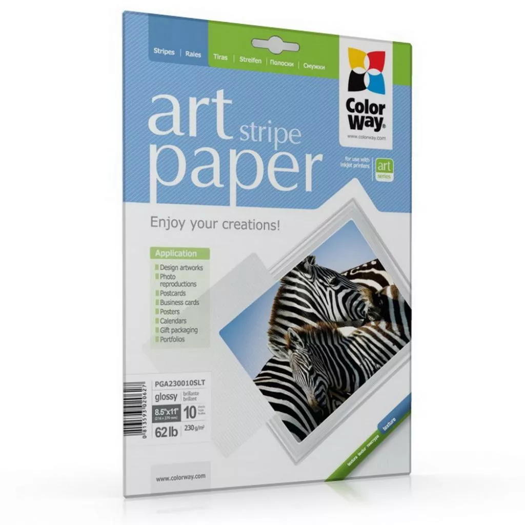 Фотобумага ColorWay ART глянцевая фактура "полоски" - фотобумага с ярковыраженной тисненой фактурой которая имитирует полоски, обладает всеми особенностями и свойствами глянцевой бумаги.