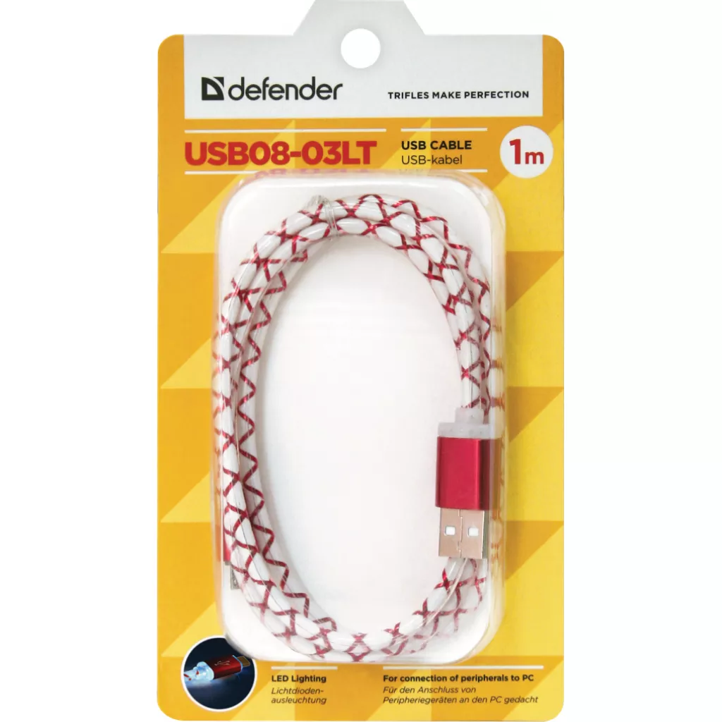 Дата кабель Defender USB08-03LT USB - Micro USB, RedLED backlight, 1m
