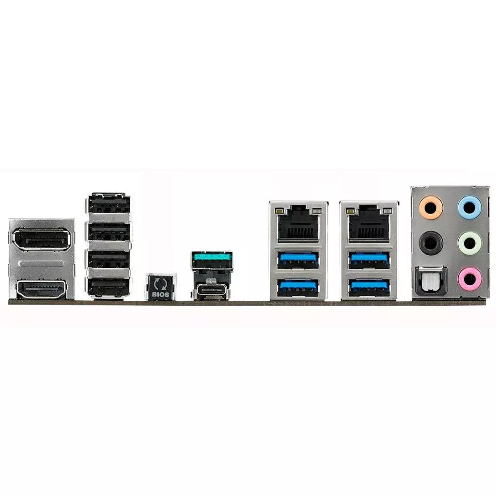 Внешние порты | 1 x 8-channel Audio I/O, 4 x USB 2.0, 5 x USB 3.1, 2 x RJ-45 LAN, 1 x HDMI, 1 x DisplayPort, 1 x optical SPDIF out, 1 x USB BIOS |