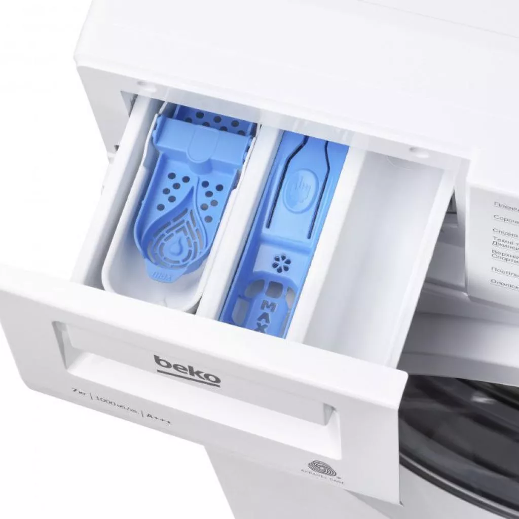 С показателем энергопотребления 173 кВт в год экономной BEKO WRE 75P2 XWWPT присвоен A+++ класс энергоэффективности.