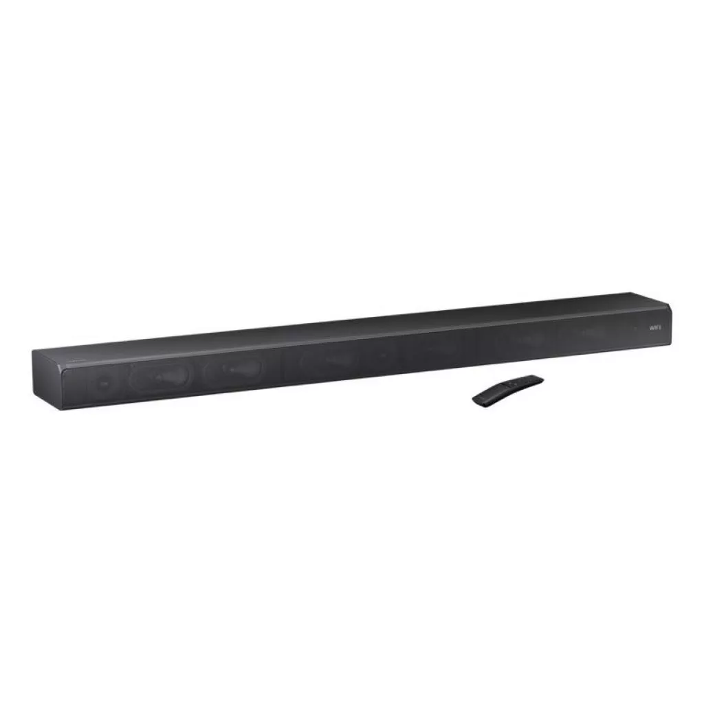Саундбар включает 9 отдельных динамиков, каждый из которых оснащен своим усилителем. Конфигурация динамиков, настройка и расположение в саундбаре оптимизированы в калифорнийской Акустической лаборатории Samsung.