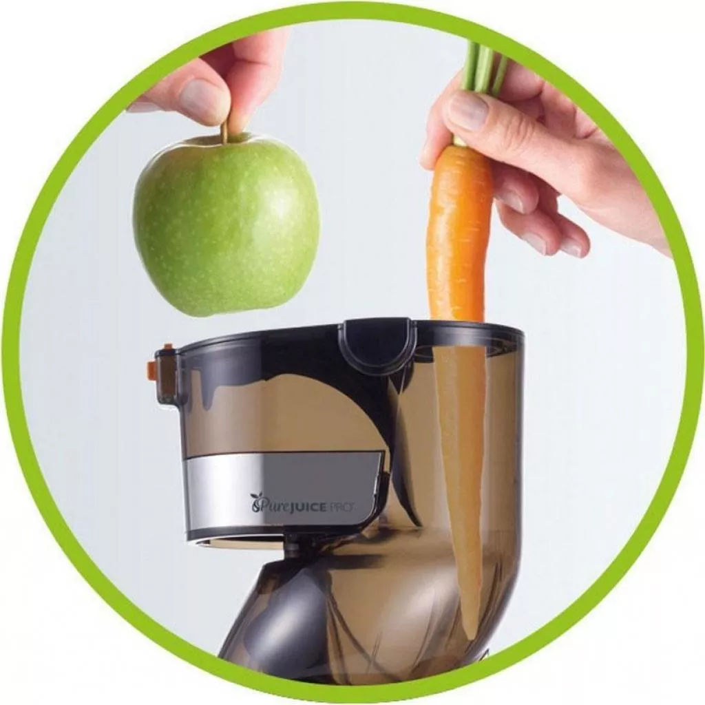 Для самых разных фруктов и овощей. Соковыжималка имеет два отсека для загрузки фруктов, благодаря чему вы с легкостью можете готовить яблочно-морковный или огуречный-яблочный соки. Соковыжималка имеет две трубки: одну узкую, другую широкую, благодаря чему вам не нужно нарезать ингредиенты - вы можете загружать их в соковыжималку целиком. Никогда еще готовить сок не было так удобно! Наслаждайтесь не только напитком, но и его приготовлением.