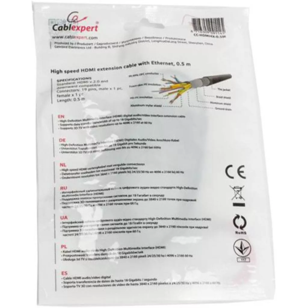 Тип Выход HDMI, Длина 0.5 м, Тип Вход HDMI, Версия HDMI v. 2.0, Тип удлинитель,
