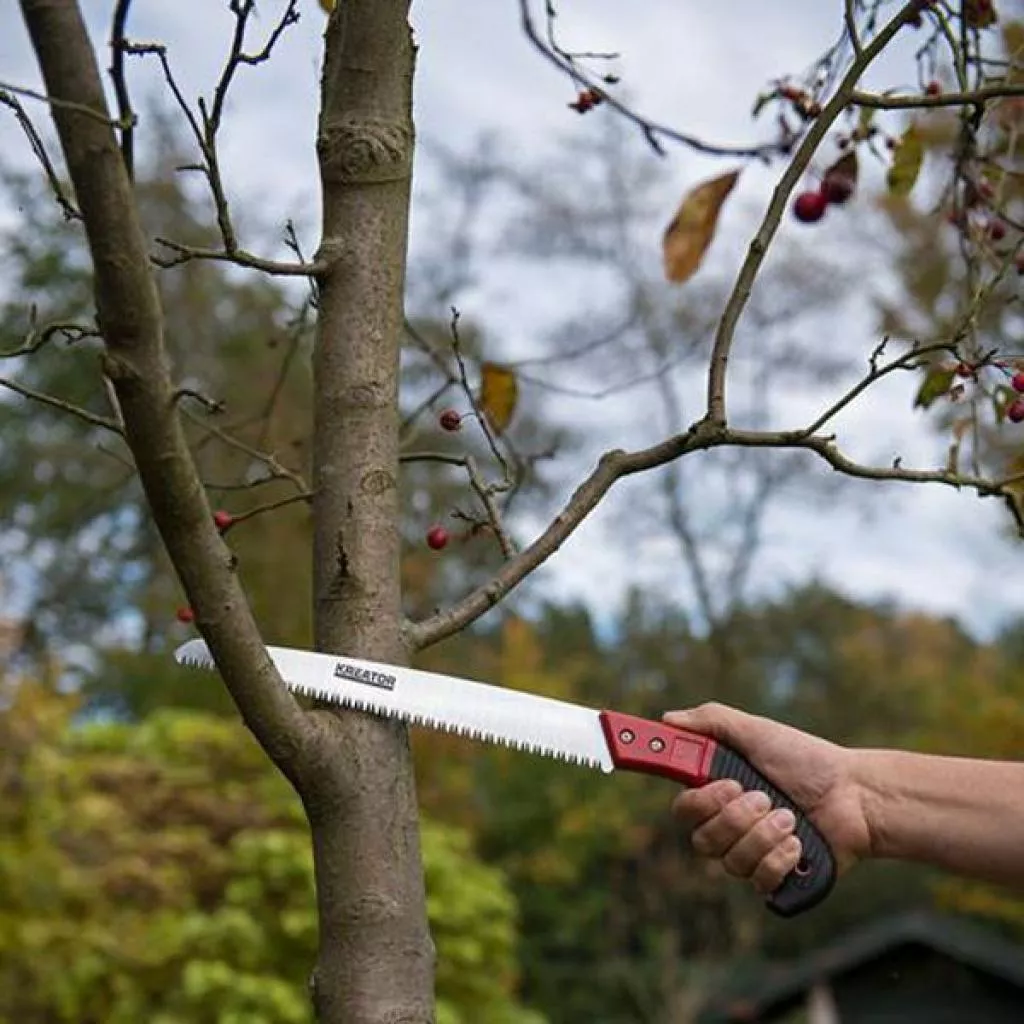 Удаление из кроны ненужных веток под силу не каждому сучкорезу. Для комплексной работы можно использовать садовую пилу, которая отлично справится с крупными ветками деревьев или кустарников. Садовые пилы различаются длиной лезвия, что позволяет отпиливать ветки разной ширины. Пилы бывают ручными, а также на штанге, облегчающей их использование для обрезки крон деревьев.