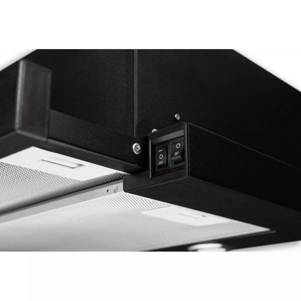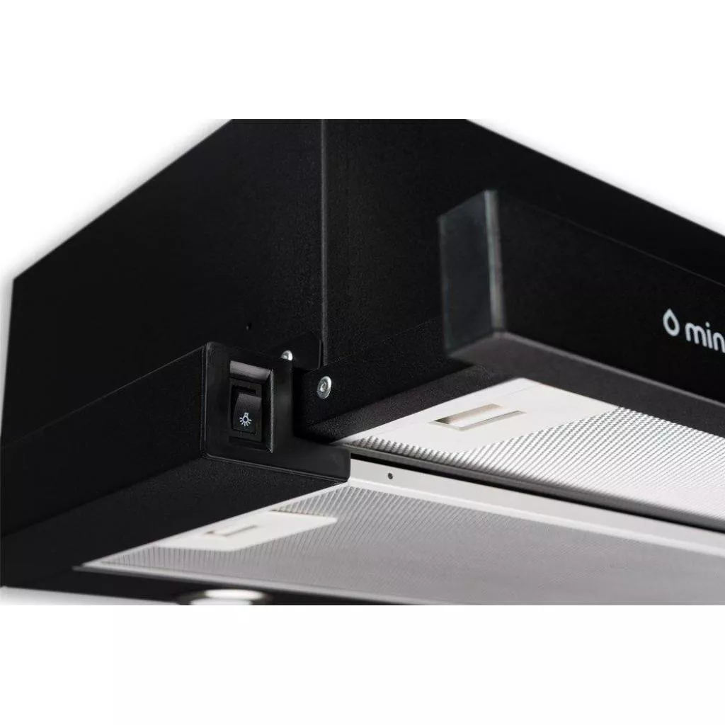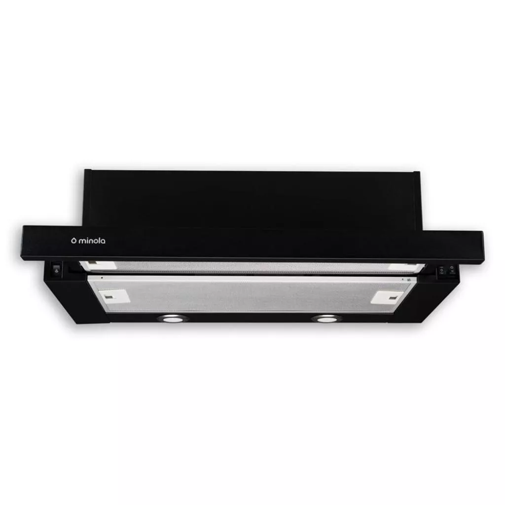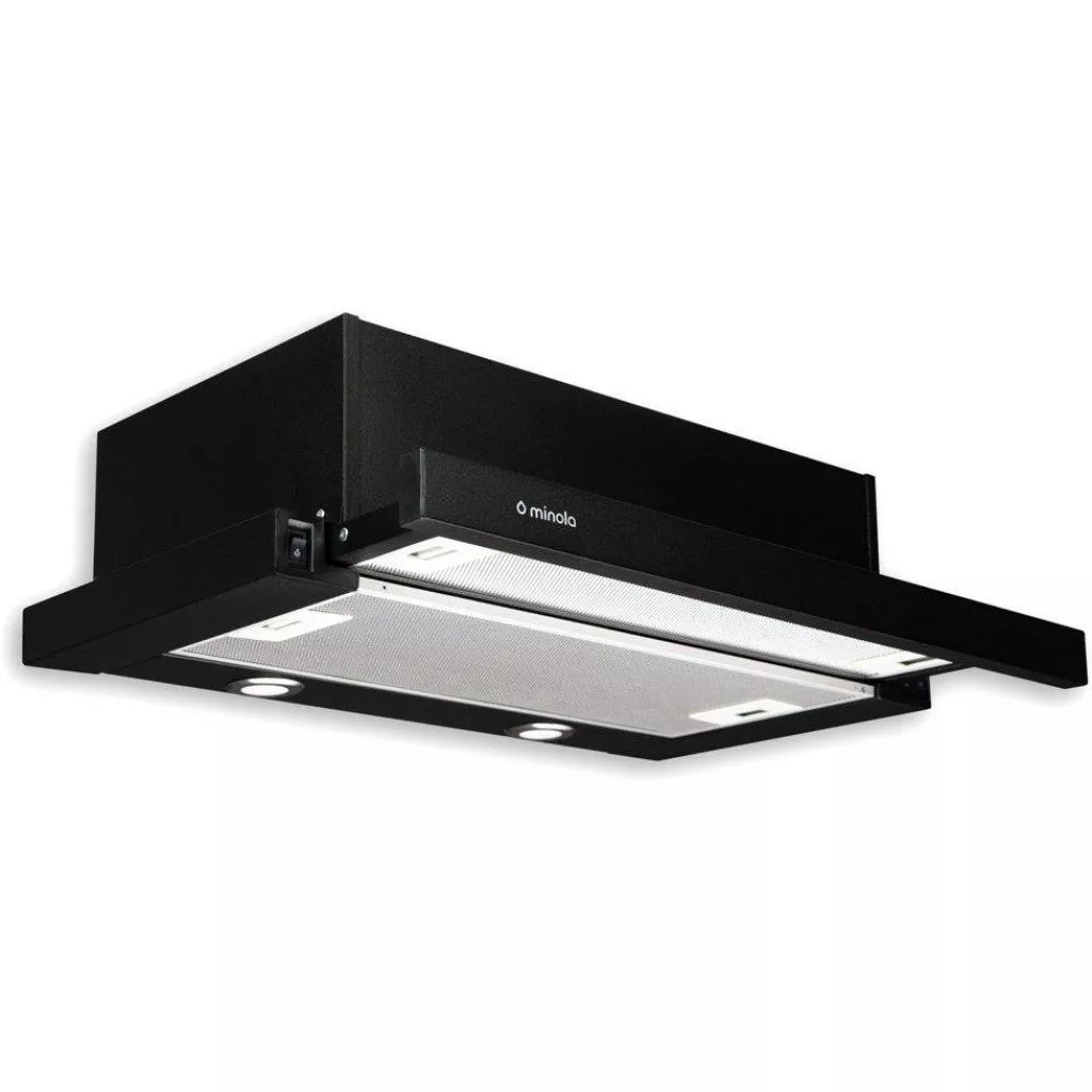 Телескопическая вытяжка Minola HTL 6012 BL 450 LED – идеальный вариант для кухни, ведь она обладает встраиваемой (в шкаф) конструкцией.