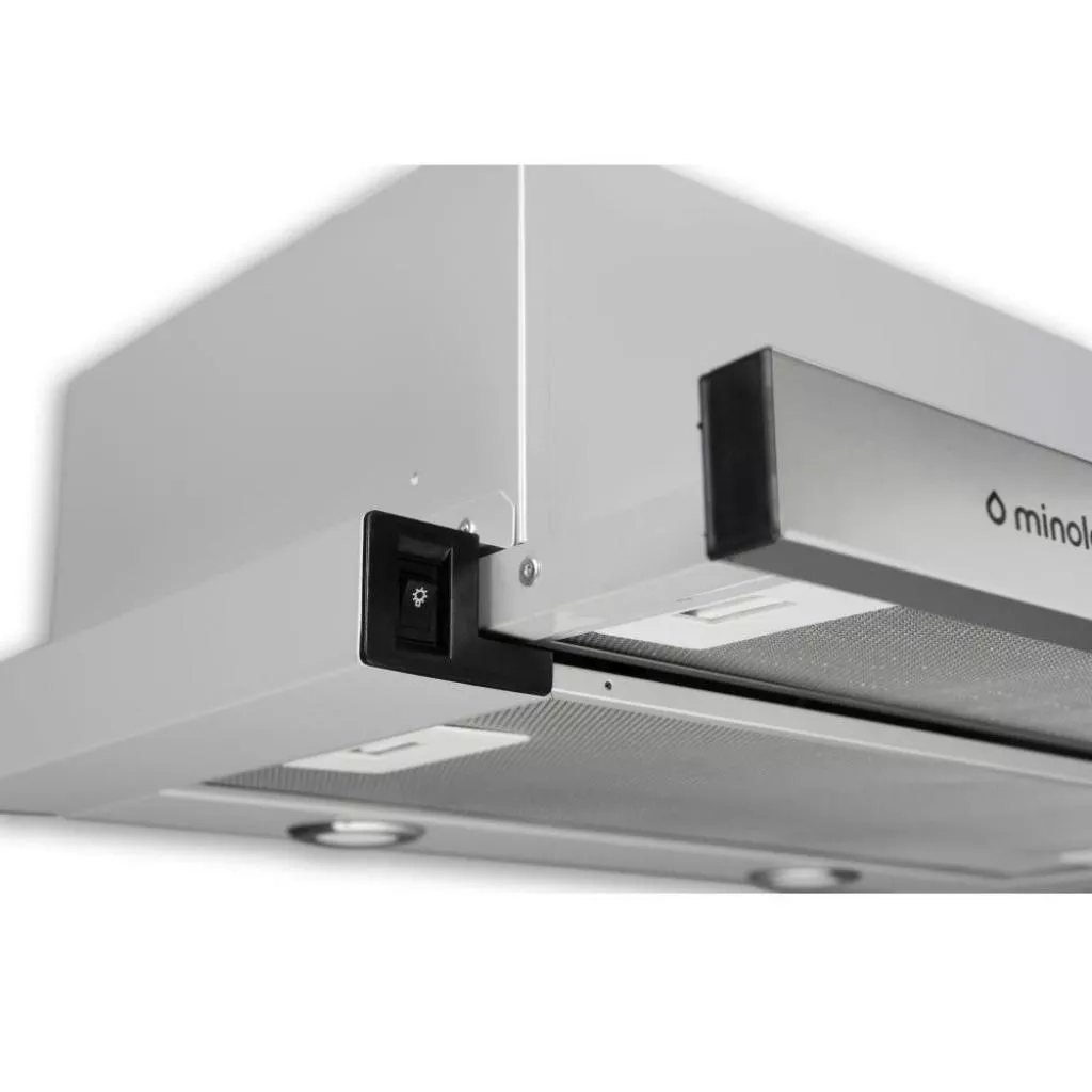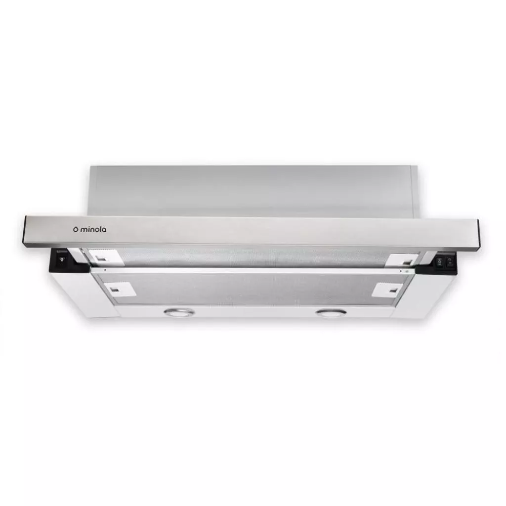 Телескопическая вытяжка Minola HTL 6012 I 450 LED – идеальный вариант для кухни, ведь она обладает встраиваемой (в шкаф) конструкцией.