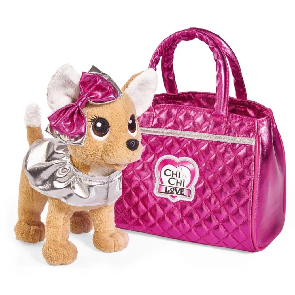 Chi Chi Love — это коллекция гламурных песиков с различными аксессуарами. У каждой собачки, как и у его хозяйки, есть свой собственный неповторимый стиль. Теперь маленькие модницы могут везде носить своего любимца, одевать его в модную одежду и даже делать прически! Плюшевая собачка < style="font-size: 1rem;" class="stagb">Чихуахуа Фешн Париж — настоящая мечта для модницы. Собачка в гламурной накидке, с бантиком и розовой сумочкой.