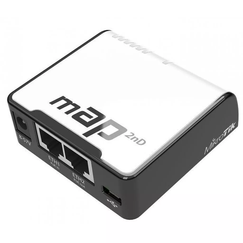 Маршрутизатор MikroTik mAP (RBmAP2nD) является беспроводной точкой доступа очень маленького размера, но с полными возможностями RouterOS.