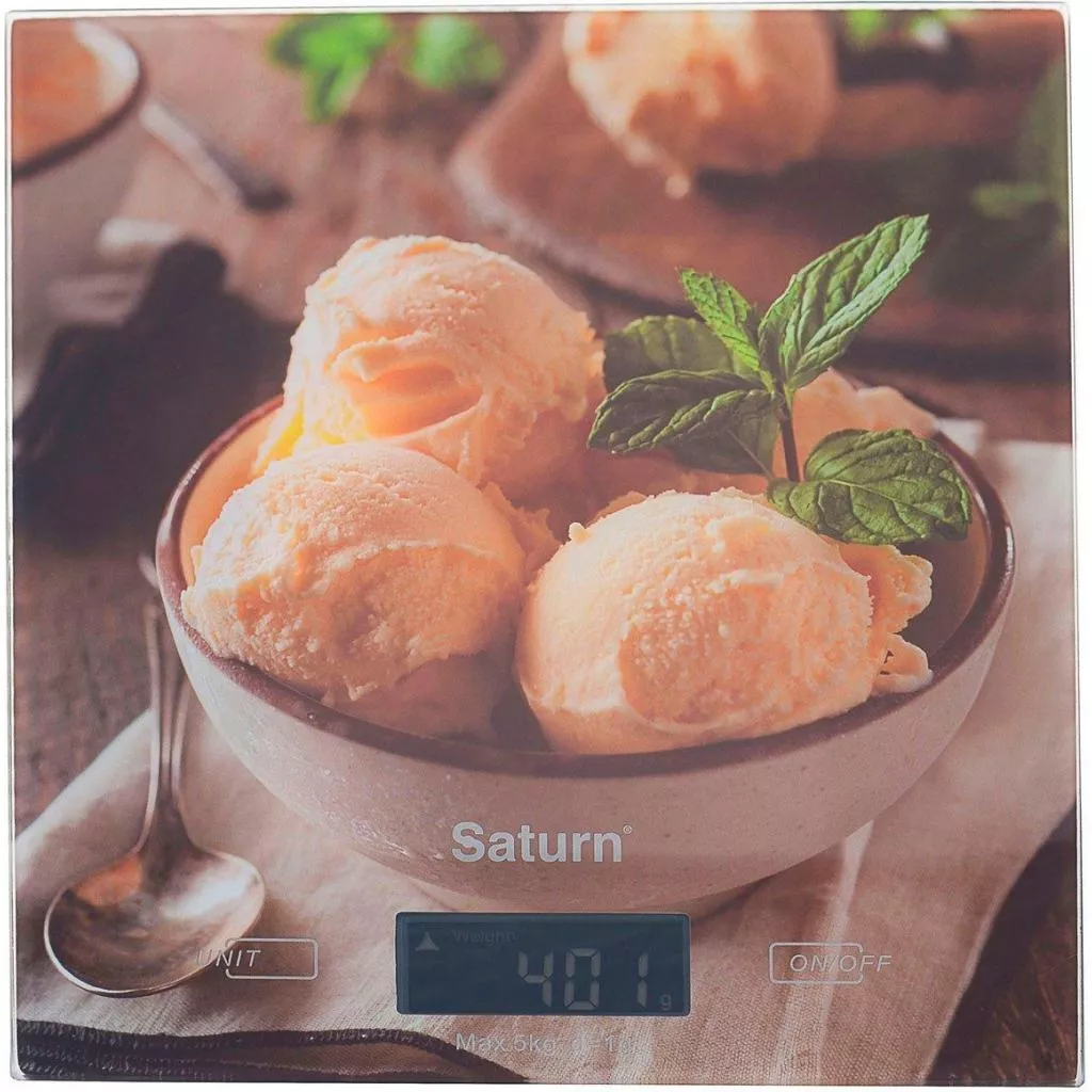 Яркие кухонные весы SATURN ST-KS7829 с качественным фотопринтом — великолепное дополнение к вашей кухне.
