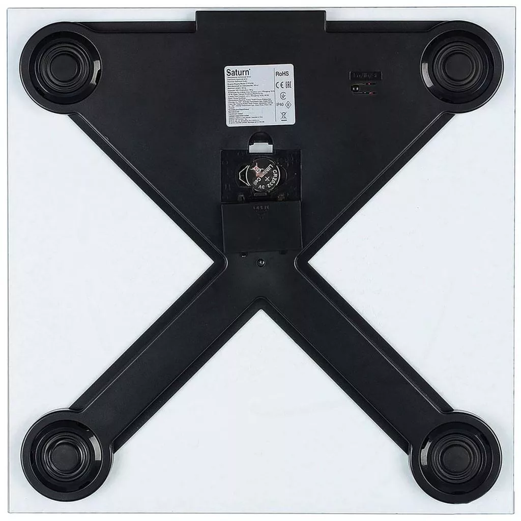 Весы напольные SATURN ST-PS0246 оснащены стеклянной платформой с оригинальным рисуноком и оборудованы жидкокристаллическим дисплеем, отображающим результаты измерений.