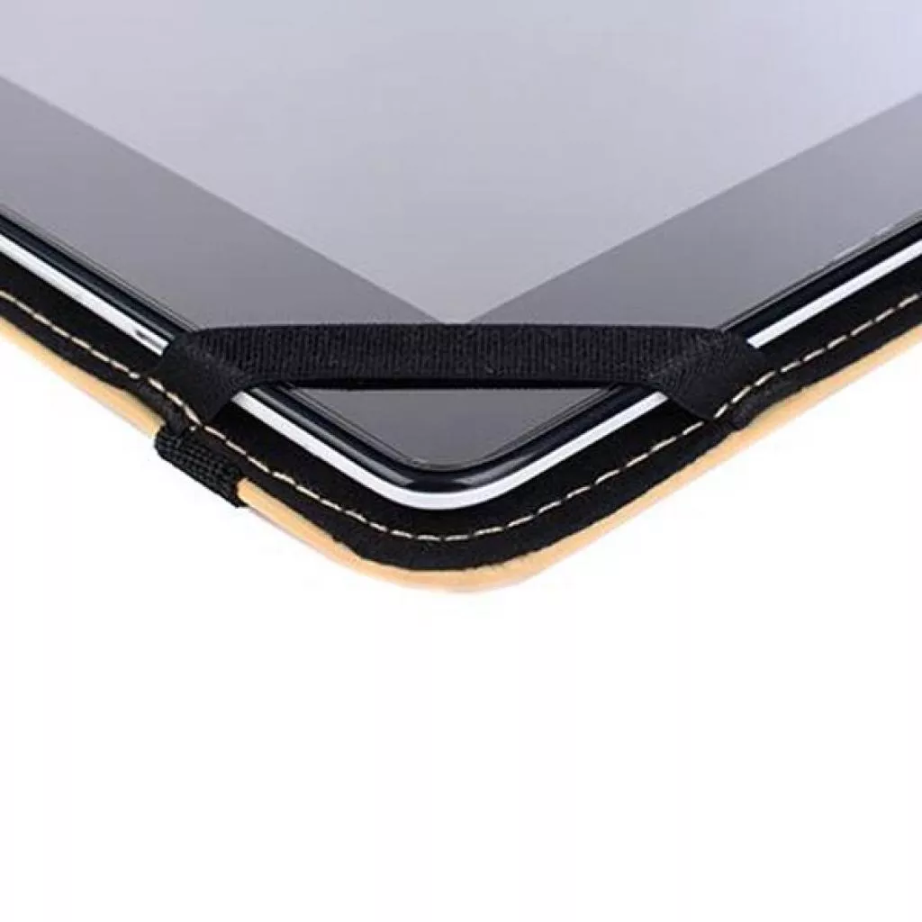 Чехол выполнен в виде традиционной книжной обложки, поэтому аксессуар идеально дополнит ваш девайс и надежно защитит его экран и корпус от механических повреждений. Крепление устройства в чехле обеспечивается упругими резиновыми держателями, которые надежно фиксируют углы девайса. Чехол изготовлен из качественных и долговечных материалов, поэтому способен обеспечить надежную защиту устройства от появления царапин и потертостей на его поверхности.