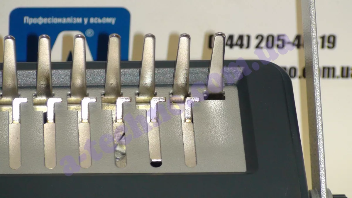 Биндер на металлическую пружину bindMARK U618 (3:1). Вид переплета металлической пружиной. Шаг перфорации 3:1 (40 отверстий). Способ перфорации ручная, горизонтальная. Форма отверстий квадратная. Ширина перфорации не ограничена. Максимальное количество листов перфорации 20 листов. Максимальная толщина документа 140 листов. Максимальный диаметр пружины 14.3 мм. Возможность отключения ножей нет. Регулировка отступа перфорации от края листа есть. Стопор позиционирования листа есть. Корпус металлический.