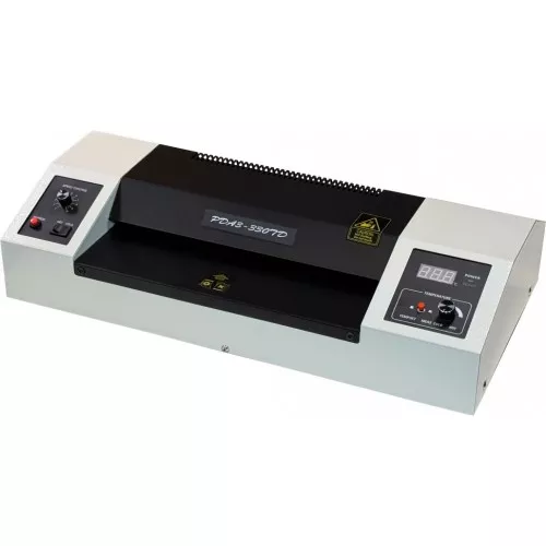 Ламинатор конвертный lamiMARK PDA3-330TD(А3). Для использования в полиграфическом центре и типографии. Профессиональный конвертный ламинатор, использующий форматную конвертную пленку. Формат до А3 (до 330мм), толщина плёнки от 60 до 250мкм, скорость ламинирования до 3300мм/мин. Есть реверс. Температурный и скоростной режимы регулируются на кнопочной панели, LED дисплей отображает степень готовности и выбранный режим. Горячее и холодное ламинирование, ламинирование фотографий, фольгирование. Вес 13,8 кг. Габариты 540×280×135 мм.