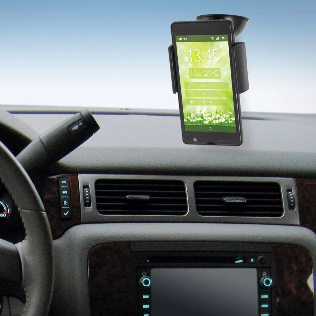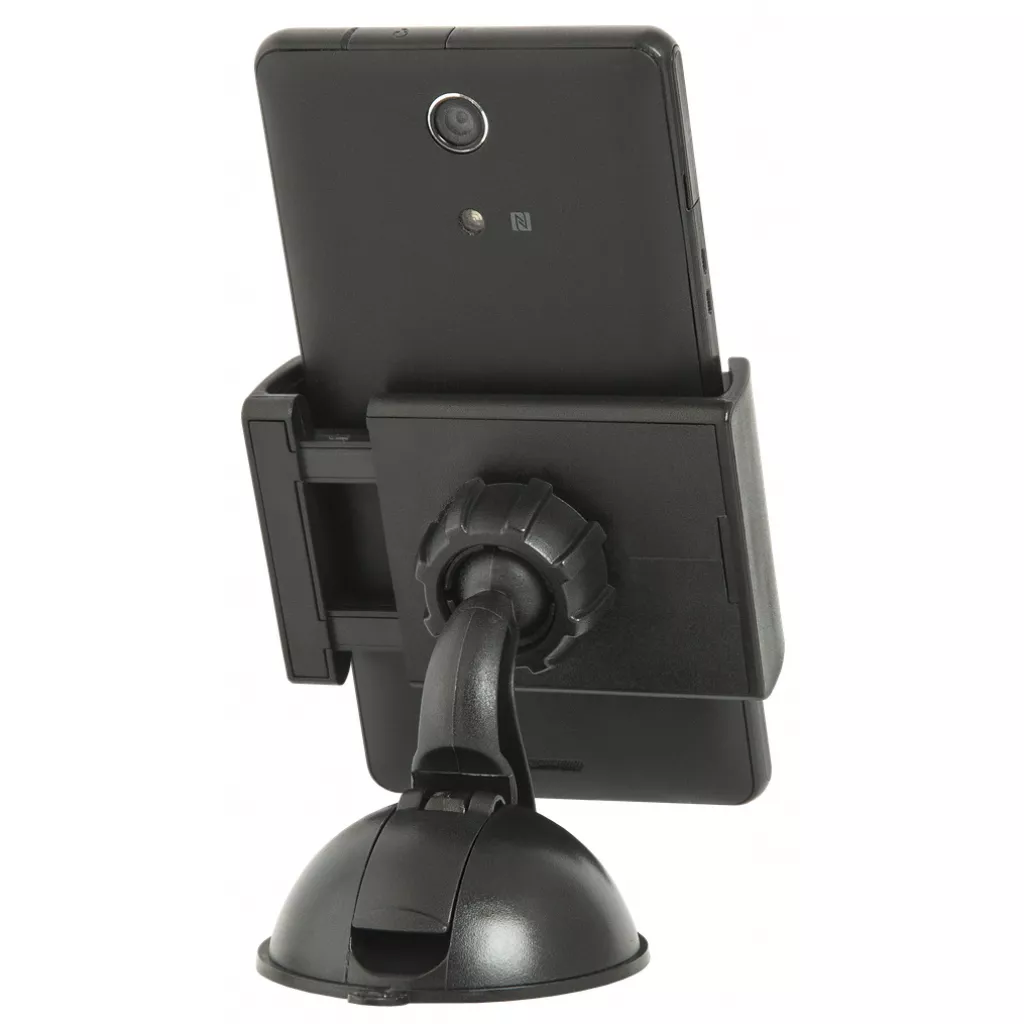 Уникальная вакуумная присоска позволяет зафиксировать держатель на лобовом стекле и торпеде, даже с текстурной поверхностью.