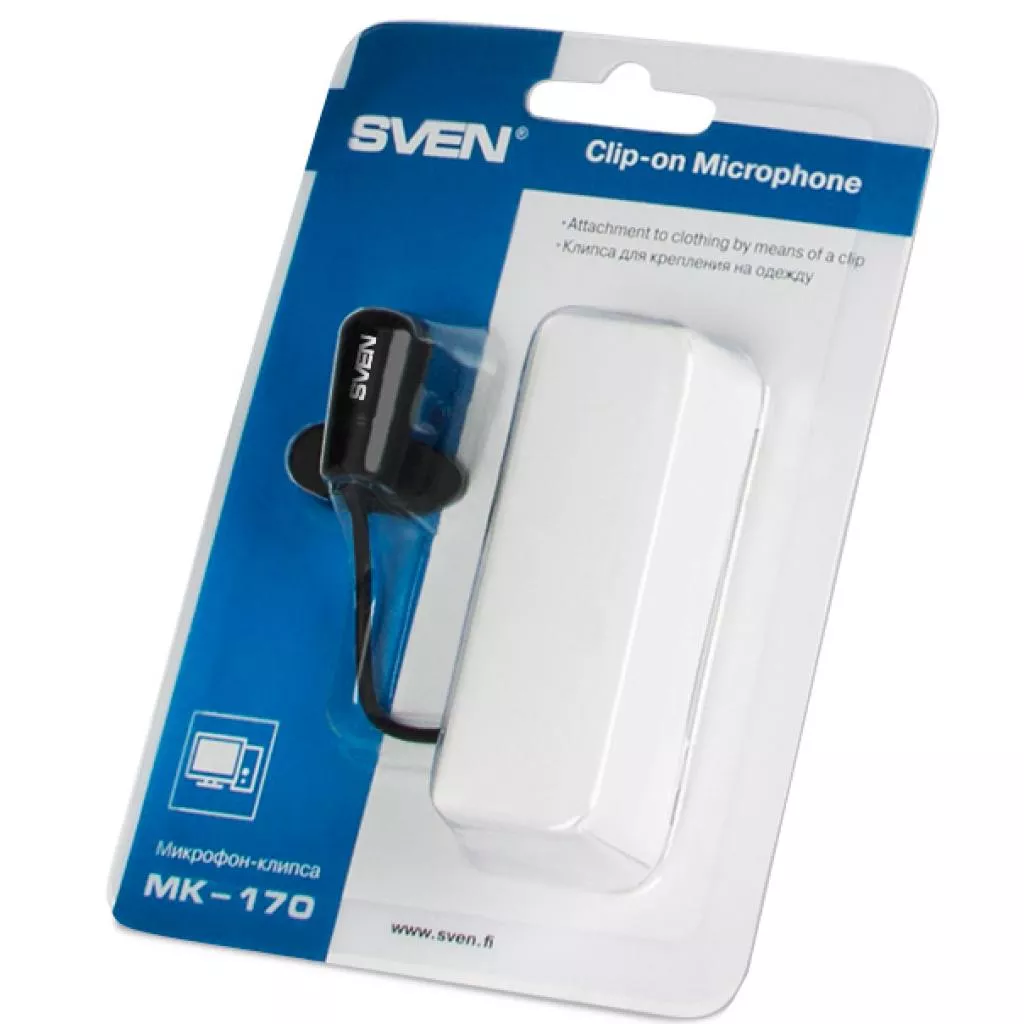 Микрофон MK-170 предназначен для общения через Интернет, записи слов и фраз при при дистанционном изучении иностранных языков и контроля правильности их произношения. Высокая чувствительность и эффективная ширина диаграммы направленности микрофона обеспечивают качественный четкий звук во время разговора. SVEN MK-170 имеет клипсу, с помощью которой микрофон крепится на одежду.