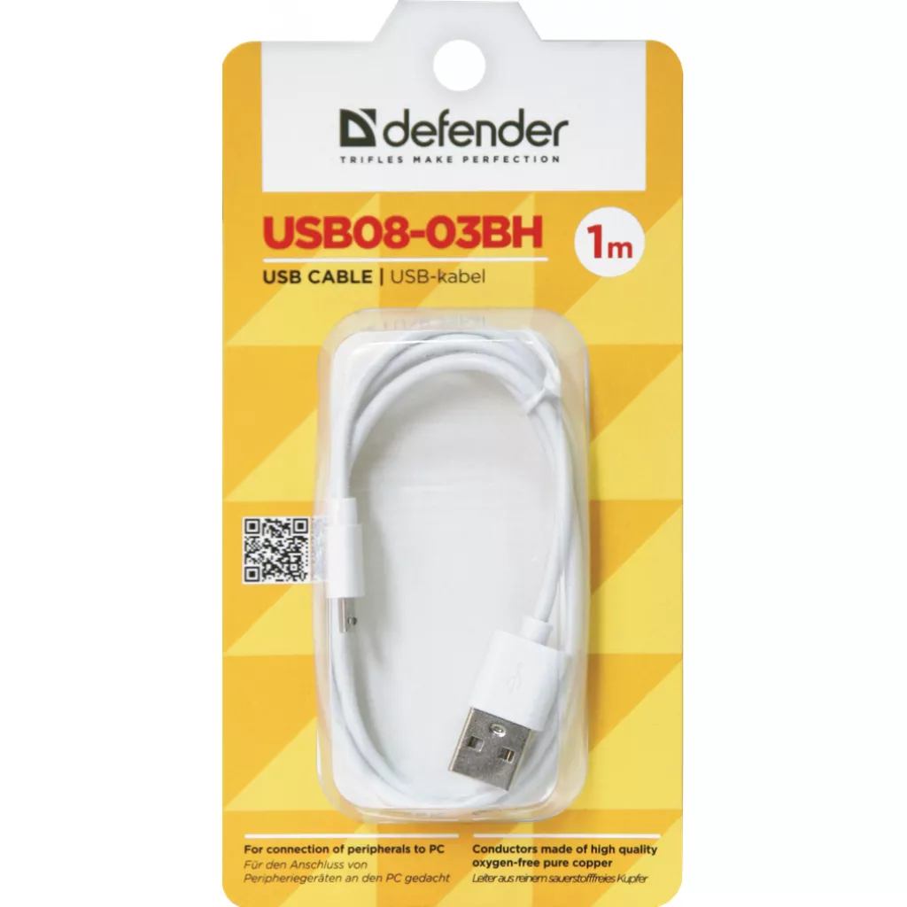 Дата кабель Defender USB08-03BH USB - Micro USB, white, 1m (87477) - это кабель-переходник, предназначенный для соединения современных мобильных устройств с компьютером с целью передачи данных или подзарядки, а также для зарядки от источников питания, снабжённых портом USB. Кабель-переходник обеспечивает высокоскоростную передачу данных в стандарте USB 2.0 со скоростью до 480 Мб.сек.