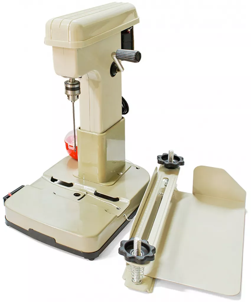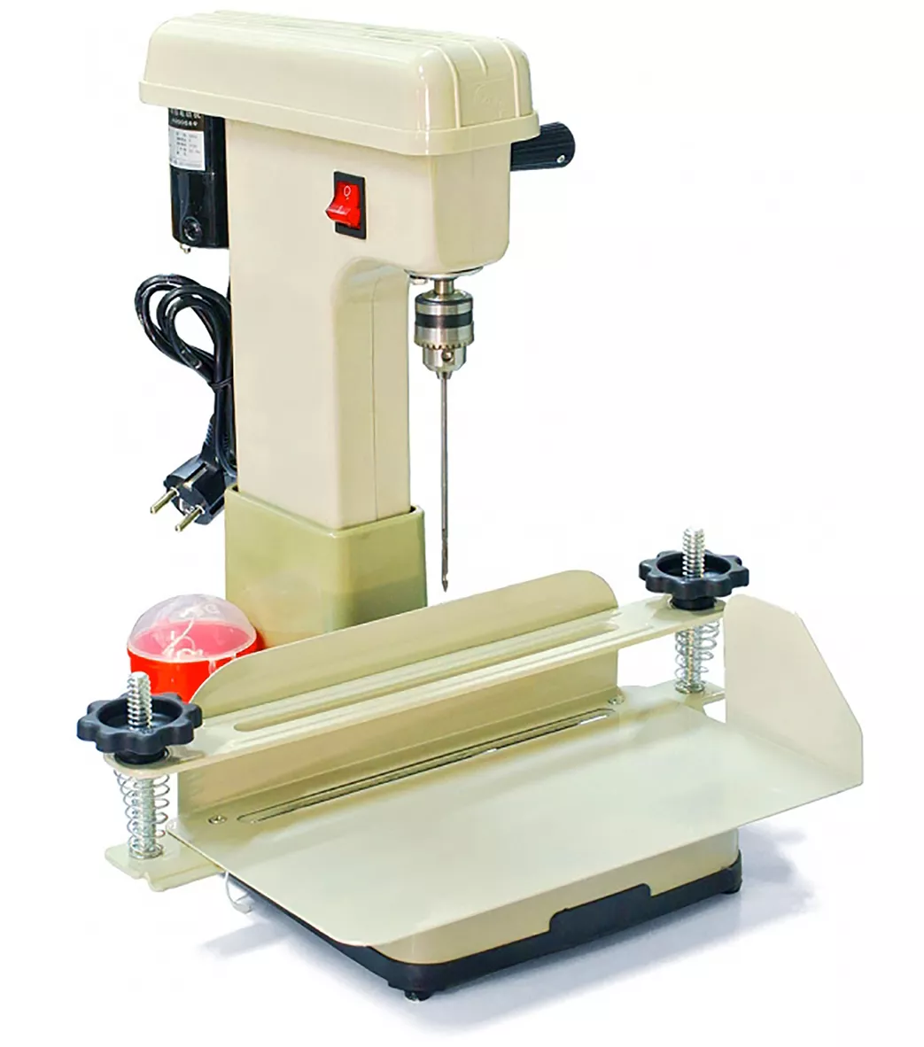 Биндер ниткошвейный ТР168-1. Настольный электрический аппарат, предназначенный для сшивания (переплёта) нитями любых бумажных документов. Используется для бухгалтерских документов и архивов любого объема. Позволяет без особого труда подшить капроновой нитью 500 листов за 5 минут. Для удобства работы имеется съемный стол-лоток для документов, в который укладывается необходимое количество листов бумаги (толщина прошивки до 100 мм.), которые прижимаются планкой с двумя подпружиненными винтами, лоток устанавливается на станину машины. С помощью бокового рычага опускается вращающаяся игла – крючок, тем самым просверливая стопу бумаги. Игла-крючок автоматически цепляет нить и протягивает ее наружу через просверленное отверстие. В комплект входят: стол – лоток, две иглы, сверло, приводные ремни, углеродные щетки и ключ. Диаметр сверла: 4 мм. Длина сверла 140 мм. Отступ от края 0-55 мм. Максимальная длина блока 310 мм. Максимальная длина шва 230 мм. Максимальная толщина переплета 100мм.