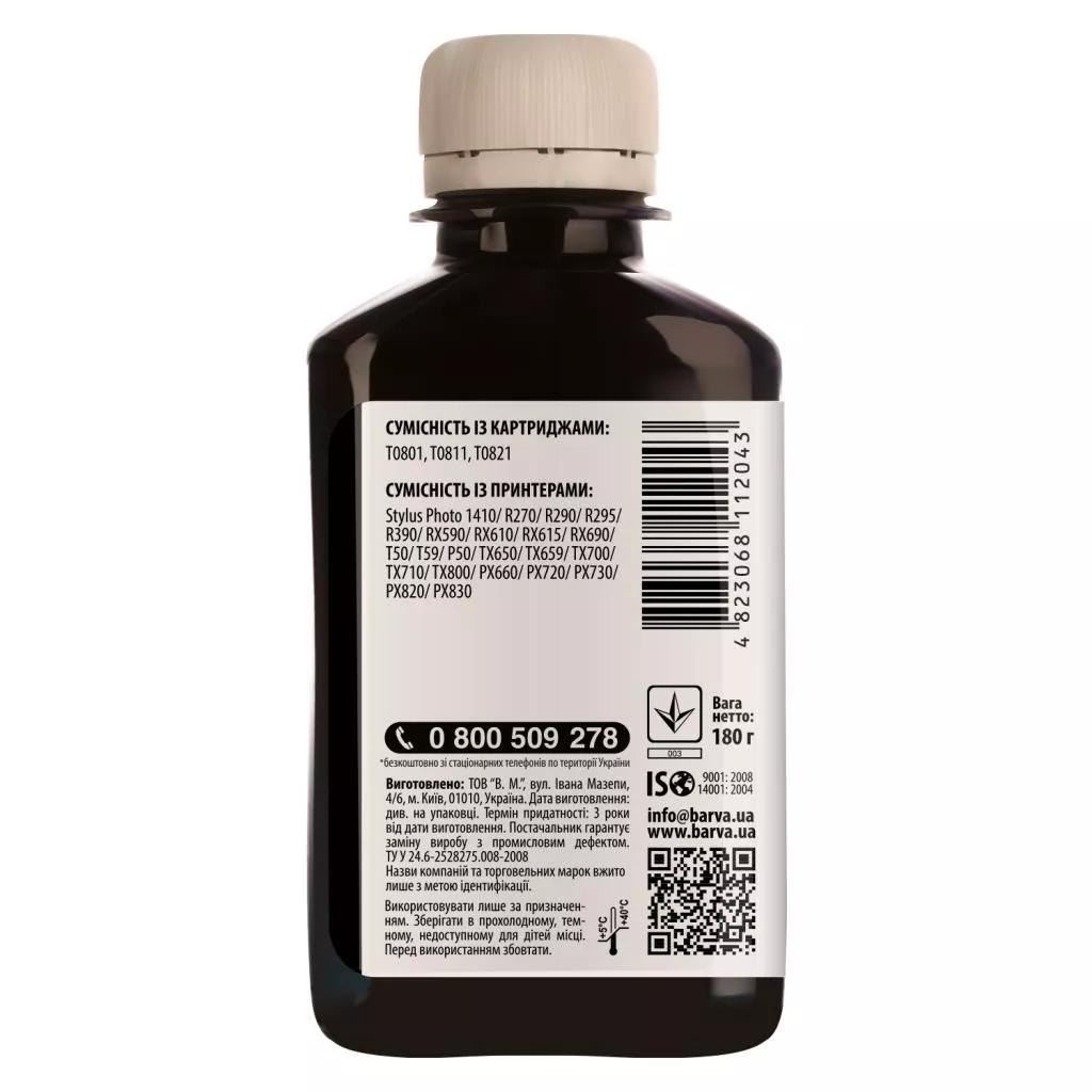 BARVA EPSON T0811 BLACK 180г (E081-135) представляют собой совместимые чернила, которые отличаются высокой свето- и водостойкостью, широкой цветовой гаммой и хорошей четкостью получаемых отпечатков. Изображение надолго сохранит яркость, благодаря внедрению в производство чернил новейших научных разработок.