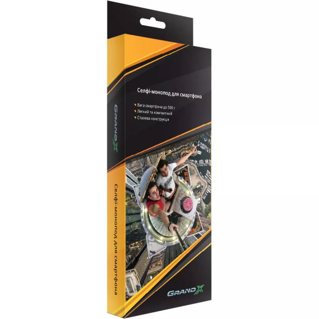 Просто подключите селфи стик Grand-X Metallicчерез шнур в стандартный разъем для наушников 3.5 мм, и одним нажатием на кнопку получайте хорошие снимки. Смартфон или фотоаппарат легко крепится на селфи монопод, и надежно фиксируется. На ручке имеется ремешок на руку, для того чтобы вы не выронили монопод даже в экстремальной ситуации. Кроме того штатив для селфи Grand-X Metallic имеет ручку с антискользящим покрытием.