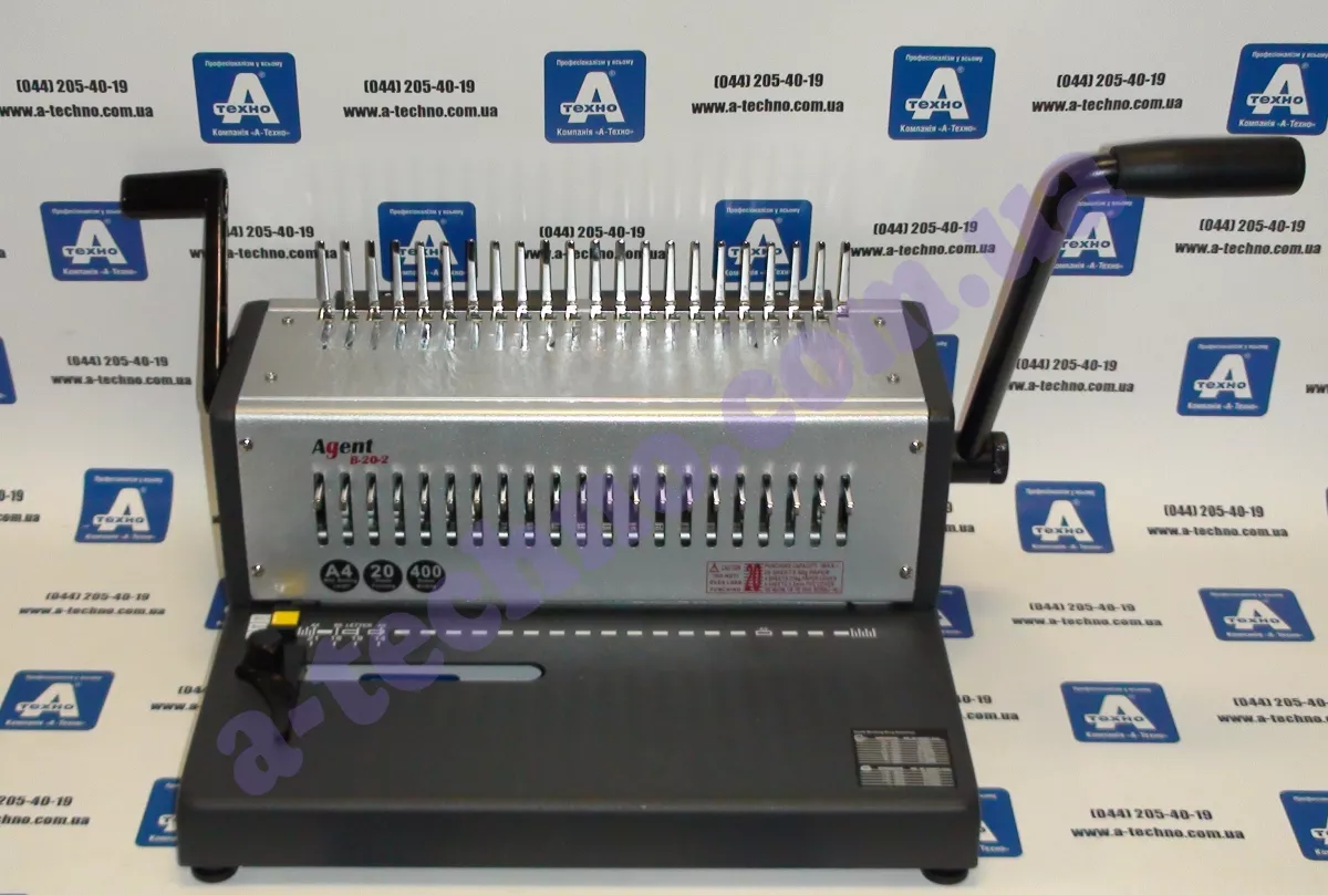 Биндер, брошюровщик Agent B-22. Тип перфорации - механический. Мощность перфорации 22 листа. Максимальная толщина переплета 450 листов. Регулировка глубины перфорации - есть 2,5 мм, 4,5 мм и 6,5 мм. Возможность отключения ножей Нет. Ручки перфорации и переплета 2. Вес 8,5 кг. Габариты 400х320х200 мм.