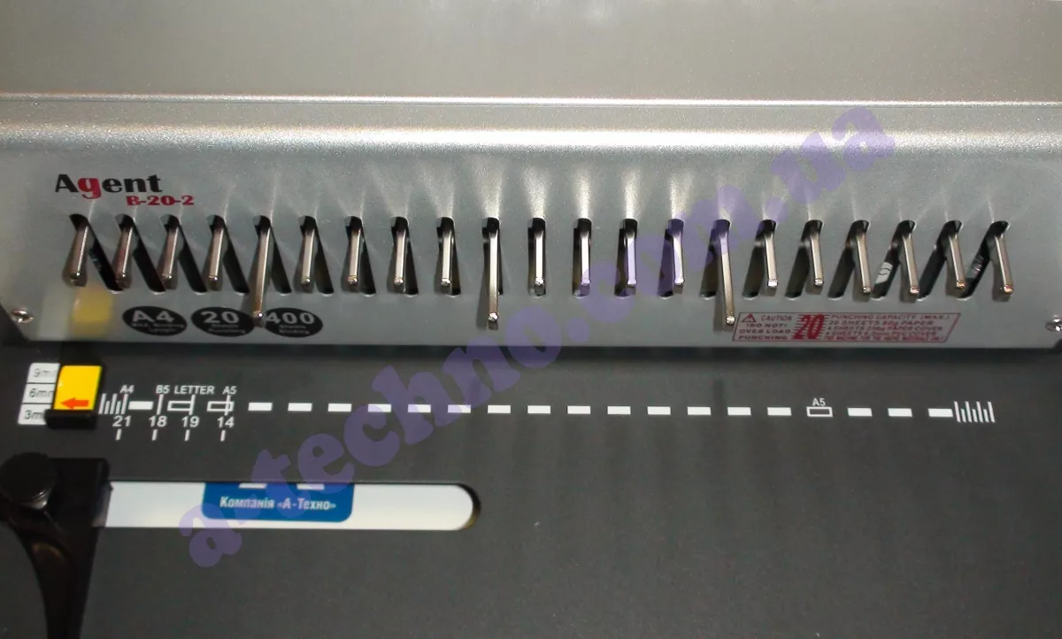 Биндер, брошюровщик Agent B-20-2 на пластиковую пружину. Мощность перфорации (листов) 20. Толщина переплета (листов) до 450. Регулировка глубины перфорации (мм) 3-6-9. Регулировка раскрытия пружины нету. Возможность отключения ножей все. Ручки перфорации и переплета 2.