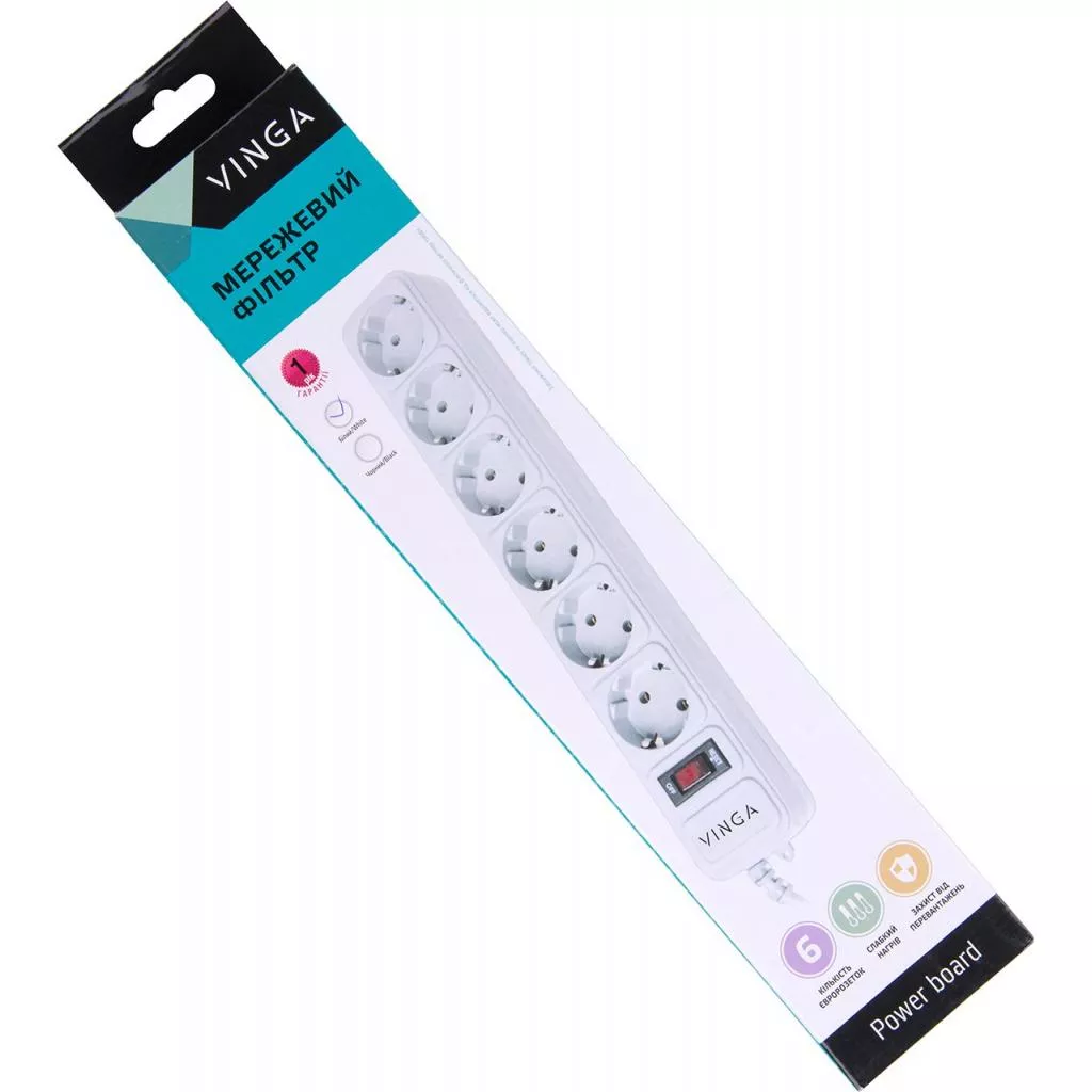 Сетевой фильтр питания Vinga защищает все подключенные при его помощи устройства от помех электросети, перегрузок и токов короткого замыкания, которые часто возникают в современных реалиях и грозят устройствам сильными поломками и утратой работоспособности. Теперь не придется искать переходник. Корпус выполнен из ударостойкого пластика и имеет сетевой кабель и вилку евростандарта, а также 6 универсальных розеток.