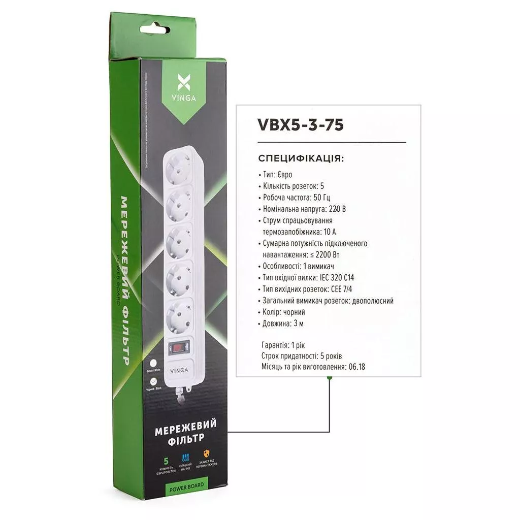 Приобрети Сетевой фильтр питания Vinga VBX5-3-75 Вы можете в компании "А-ТЕХНО", оформив заказ на этом сайте через корзину или позвонив по указанным телефонам.