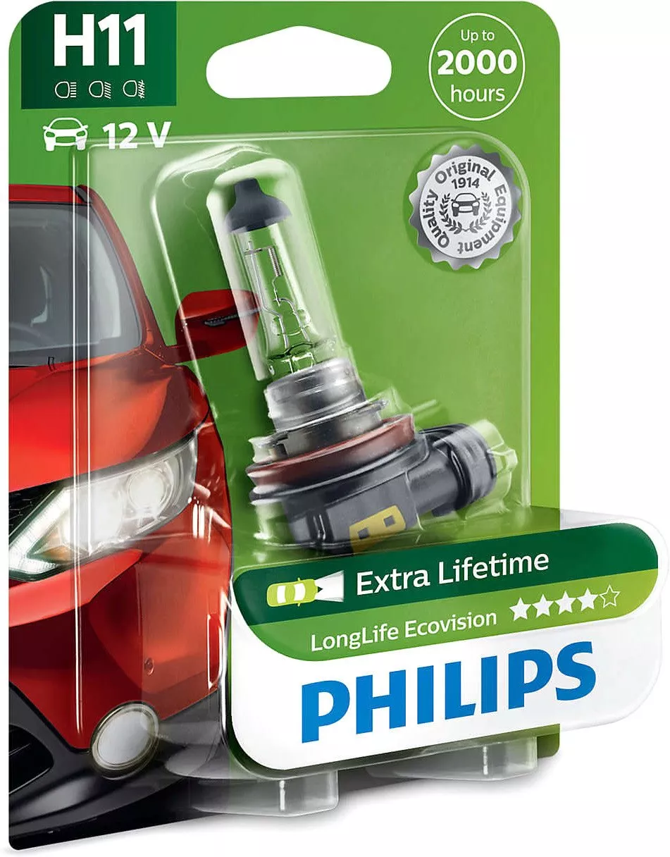 Благодаря увеличенному сроку службы ламп Philips LongLifeEcoVision замена ламп требуется значительно реже, что идеально подходит для автомобилей с высокой электрической нагрузкой.