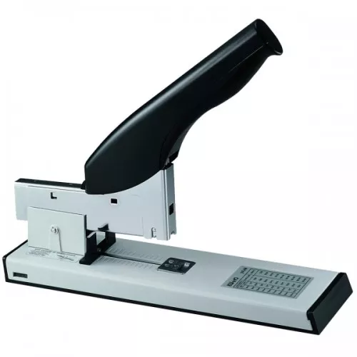 Степлер Rexel Long Arm предназначен для скрепления по центру отчетов, журналов и каталогов. Калиброванная шкала позволяет точно расположить скрепляемый материал, а функция верхней автоматической загрузки упрощает добавление 210 скоб Rexel No. 56 или 168 No. 16. Глубина сшивания – 280 мм, загибает скобы внутрь, наружу или пробивает без загибания 20 листов за раз