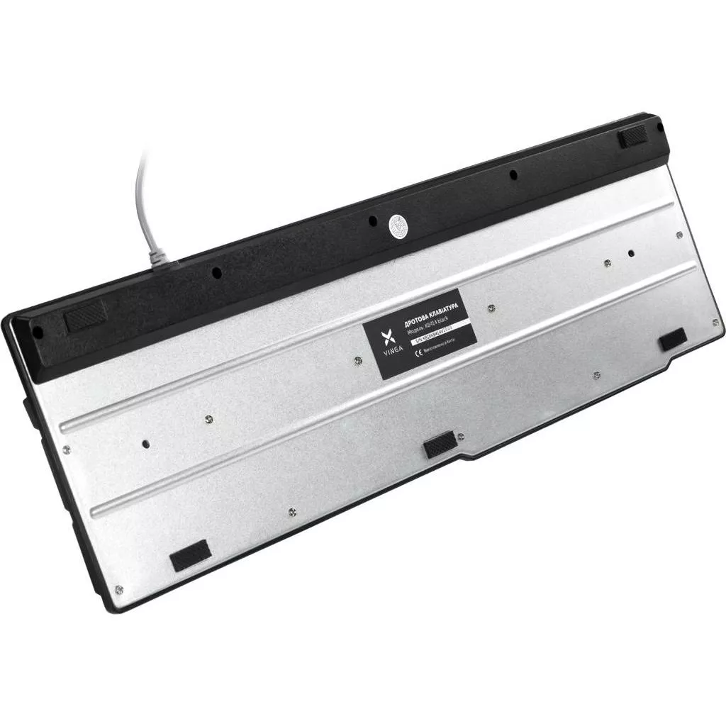 Vinga KB414 black — мультимедийная клавиатура, оборудованная системой подсветки, в которой присутствуют все цвета радуги. В отличие от некоторых предыдущих моделей данной линейки, это устройство имеет высокие клавиши. Благодаря рельефной структуре работать с ним довольно удобно, ведь вам проще попадать именно по нужным кнопкам, не затрагивая случайно пальцами соседние.