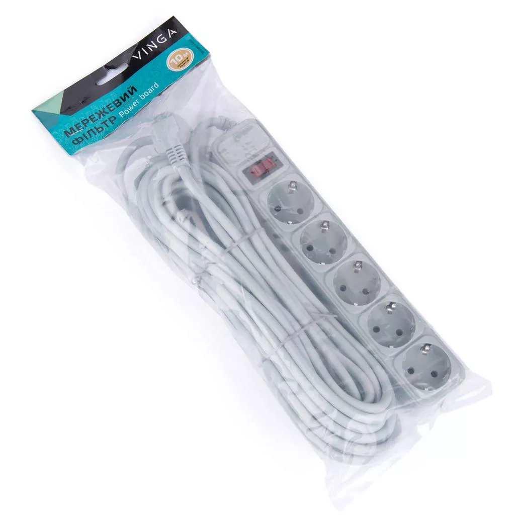 Сетевой фильтр питания Vinga защищает все подключенные при его помощи устройства от помех электросети, перегрузок и токов короткого замыкания, которые часто возникают в современных реалиях и грозят устройствам сильными поломками и утратой работоспособности. Теперь не придется искать переходник. Корпус выполнен из ударостойкого пластика и имеет сетевой кабель и вилку евростандарта, а также 5 универсальных розеток.