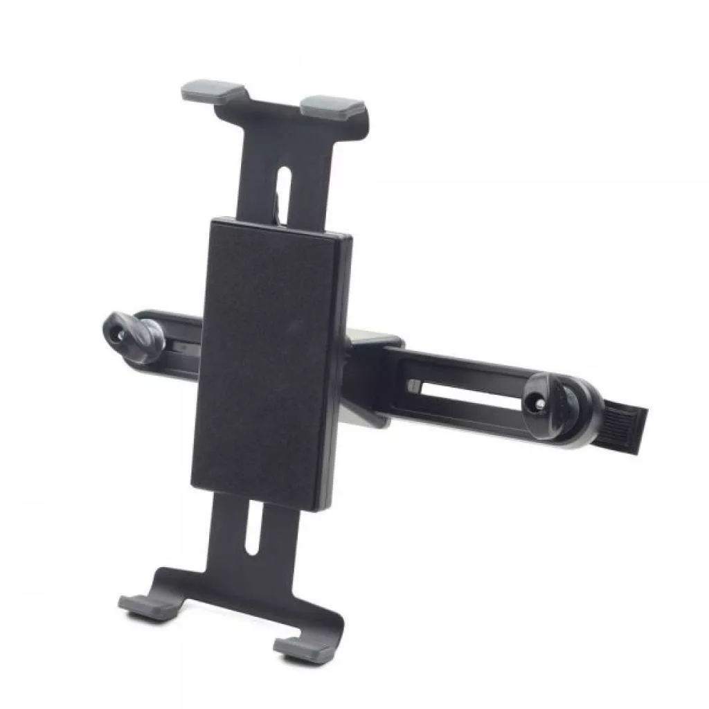 Универсальный автодержатель GEMBIRD для планшета, крепление к подголовнику оснащен раздвижными зажимами (150 - 210 мм) и поворотным креплением, позволяющим зафиксировать устройство под любым углом. Настраиваемое крепление дает возможность легко установить и надежно закрепить держатель на большинстве подголовников.