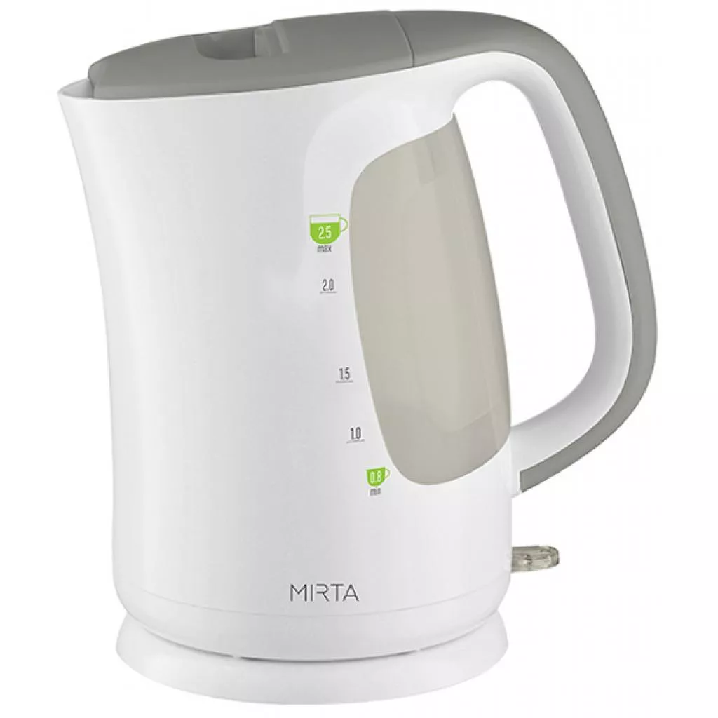 Корпус электрического чайника выполнен из прочного, но легкого экологически чистого пластика Mirta KT-1025. Модель оснащена фильтром для воды, оборудована удобным индикатором уровня воды. Защита от включения без воды обеспечивает безопасность и увеличивает срок службы модели. Удобная подставка позволяет включать чайник в любом положении, для этого предусмотрен угол поворота на 360 градусов. Для хранения шнура предусмотрен специальный отсек.