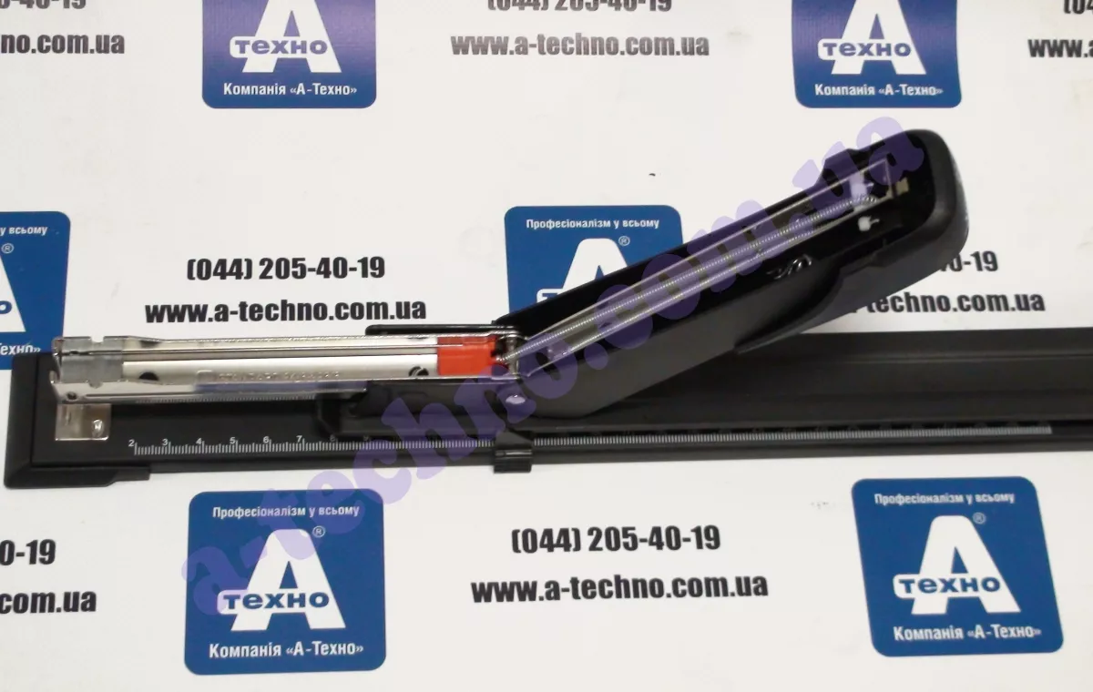 Мощный степлер с "длинным плечем", что позволяет без особых проблем переплести формат А3 пополам.