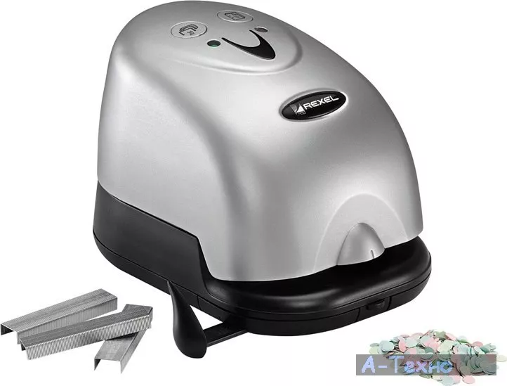 Rexel Polaris 1420 – уникальное устройство, сочетающее в себе электрический степлер с дыроколом. Легкое переключение между двумя режимами осуществляется простым нажатием кнопки. Polaris 1420 пробивает 14 листов, имеет глубину сшивания 9мм и скрепляет 20 листов скобами Rexel No. 56 (26/6) или No. 16(24/6). Работает от адаптера, который поставляется в комплекте, или от 6 батареек АА, батарейки приобретаются дополнительно.