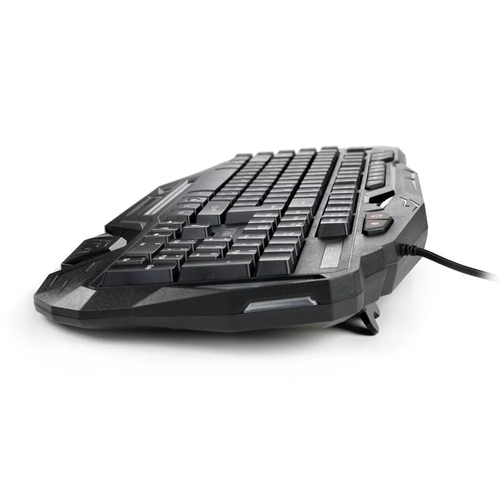 На нижней части изделия имеется подставка для рук, которая препятствует быстрому уставанию связок и мышц во время работы. Общее число основных клавиш в модели — 104. Сюда относятся комплексы NumPad, F1 — F12, буквы, знаки препинания, а также стандартные команды, такие как Ctrl или Alt, например. А у левого и верхнего краев корпуса размещены дополнительные кнопки в общем количестве 16 шт. KBG417 black изготовлена по мембранной технологии, то есть между контактами платы и элементами ввода в ней проложена плотная, прочная эластичная пленка. Устройство подключается к ПК через USB посредством 1.5-метрового кабеля.
