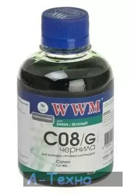 WWM CANON CLI-8Green (C08/G) - чернила для системы непрерывной подачи чернил, струйных принтеров и МФУ. Вся продукция производится на заводах, оснащенных современным оборудованием, и соответствует международным стандартам качества.Рейтинг страницы: 4.7