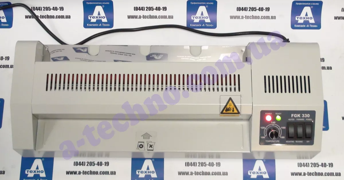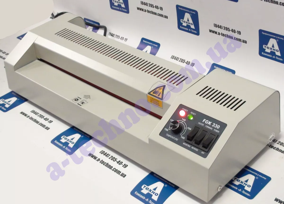 Ламинатор конвертный FGK-330. Пачка пленки в Подарок. Формат А3. Рабочая температура 100-160. Скорость 0, 5 м/м. Реверс да. Фольгирование да. Ламинирование фотографий да. Макс. плотность пленки 250мк. Макс. толщина ламинирования 2 мм. Только в А-Техно - гарантия 18 месяцев.