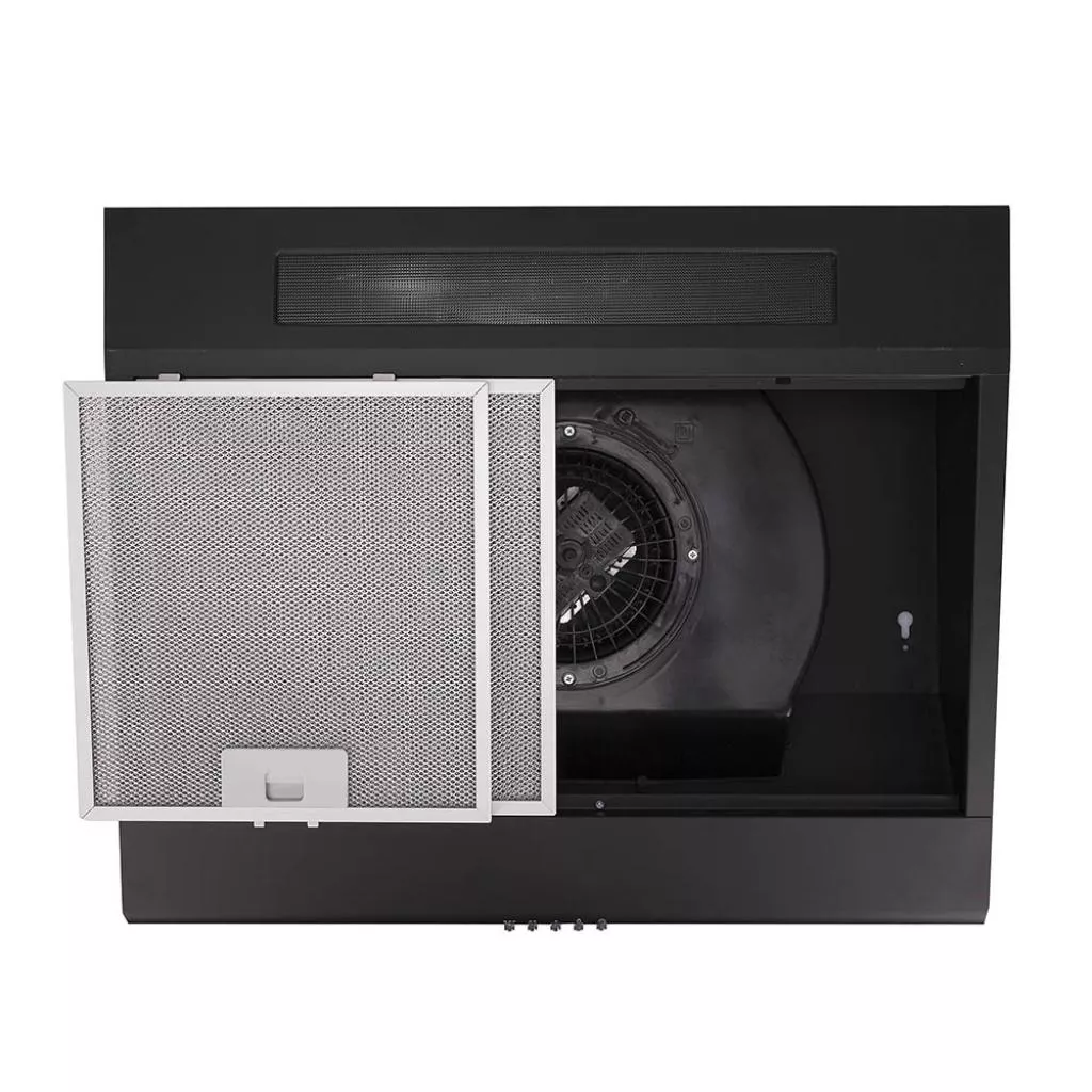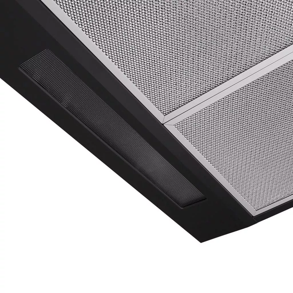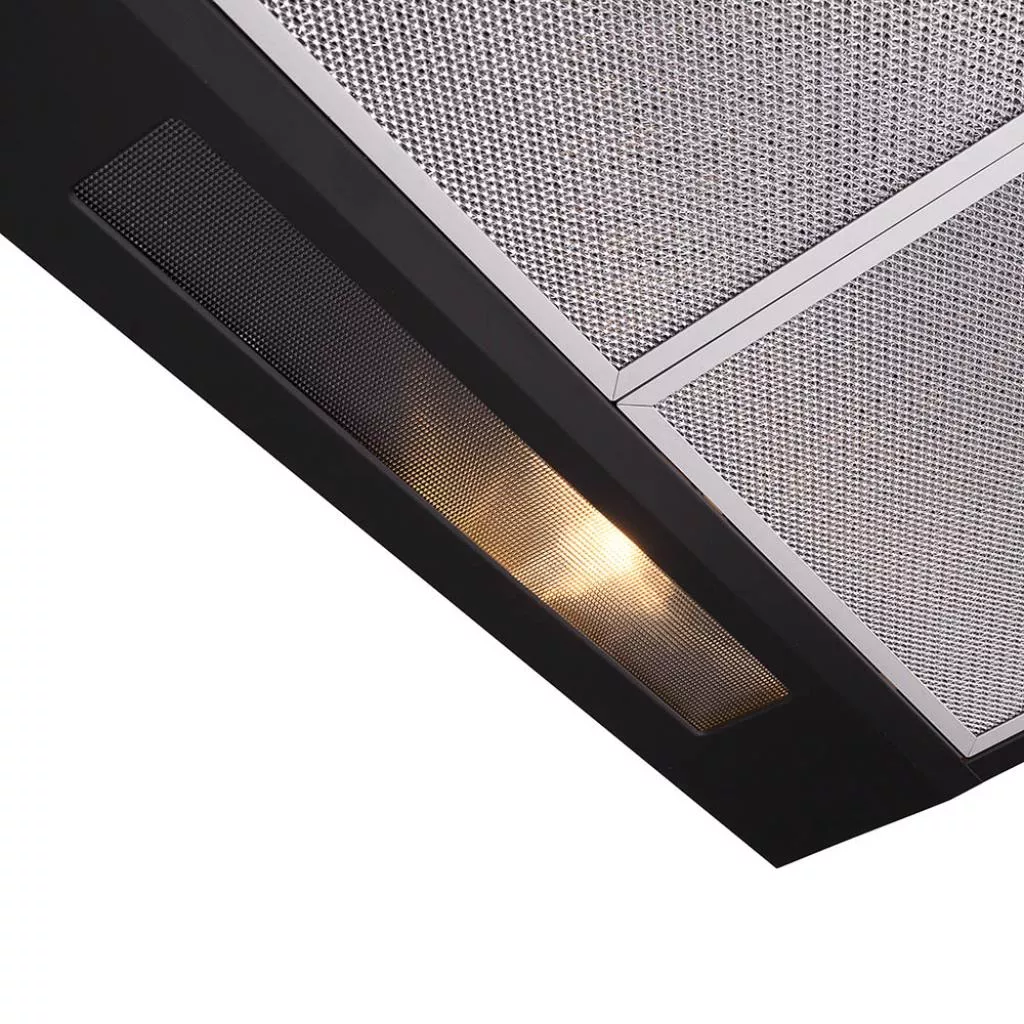 В режиме отвода воздух, проходя через металлический жироулавливающий фильтр, очищается от жира и удаляется из кухни в вентиляционный канал. В режиме рециркуляции через угольный фильтр воздух очищается от запаха, и затем снова возвращается в помещение кухни. PYRAMIDA MH 10-50 black