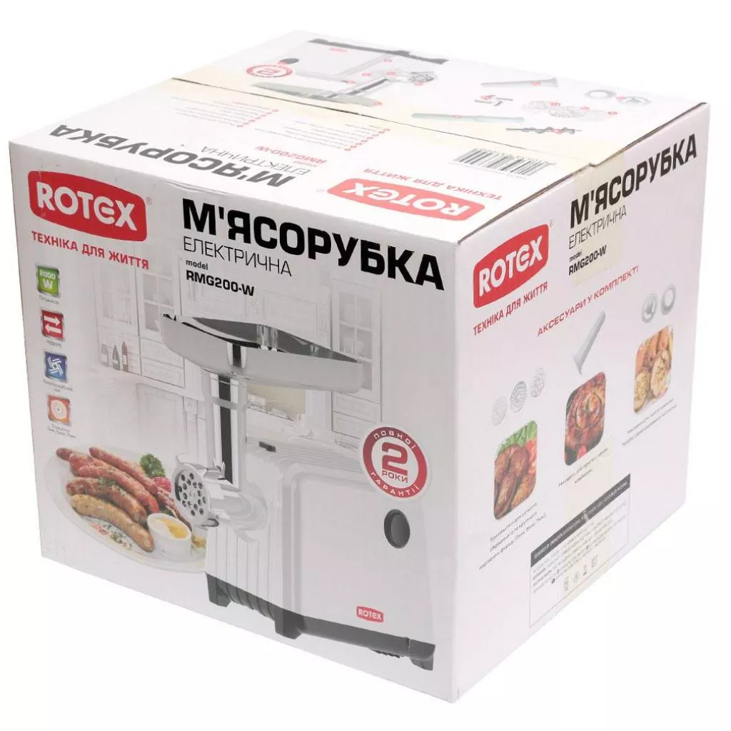 Мясорубка Rotex RMG200-W – мощная мясорубка 2000 Вт с легкостью превратит качественное мясо в однородный воздушный фарш, без труда перемелет рыбу, приготовит домашние колбаски и многое другое. Благодаря высокой продуктивности устройство перерабатывает достаточно большое количество мяса и делает это практически бесшумно.
